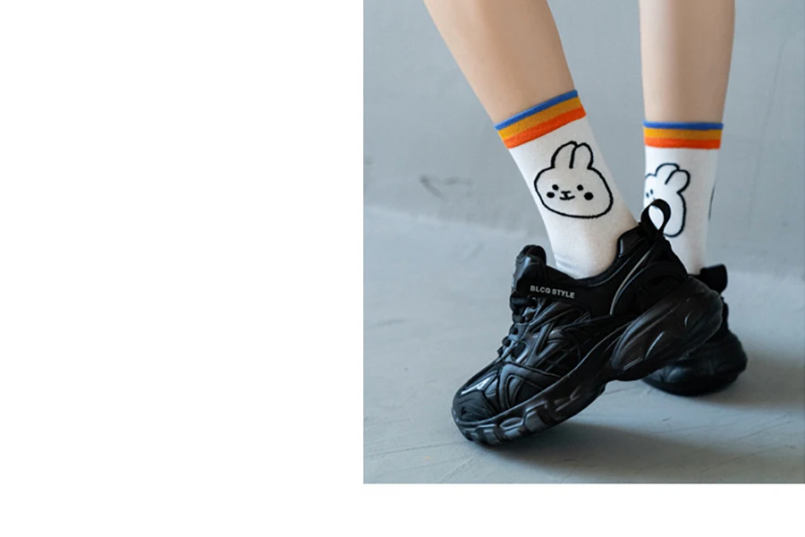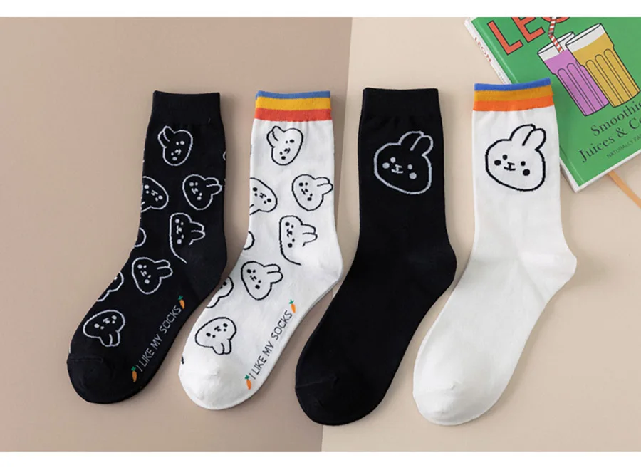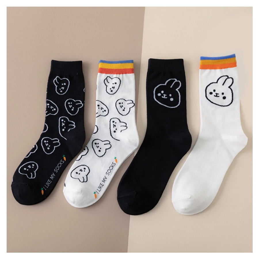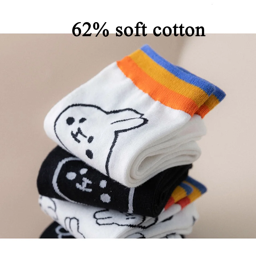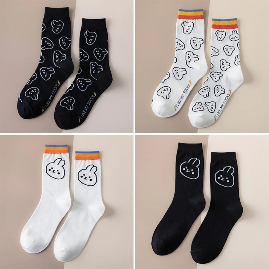 Носки женские хлопковые в стиле Харадзюку, смешные повседневные короткие штаны с милым мультяшным рисунком кролика, белые черные