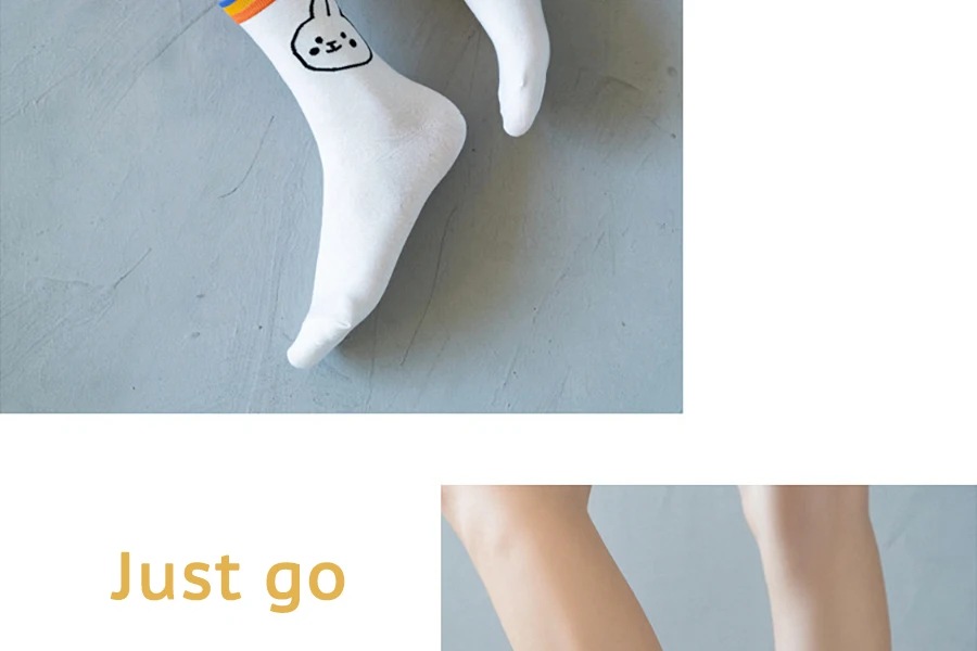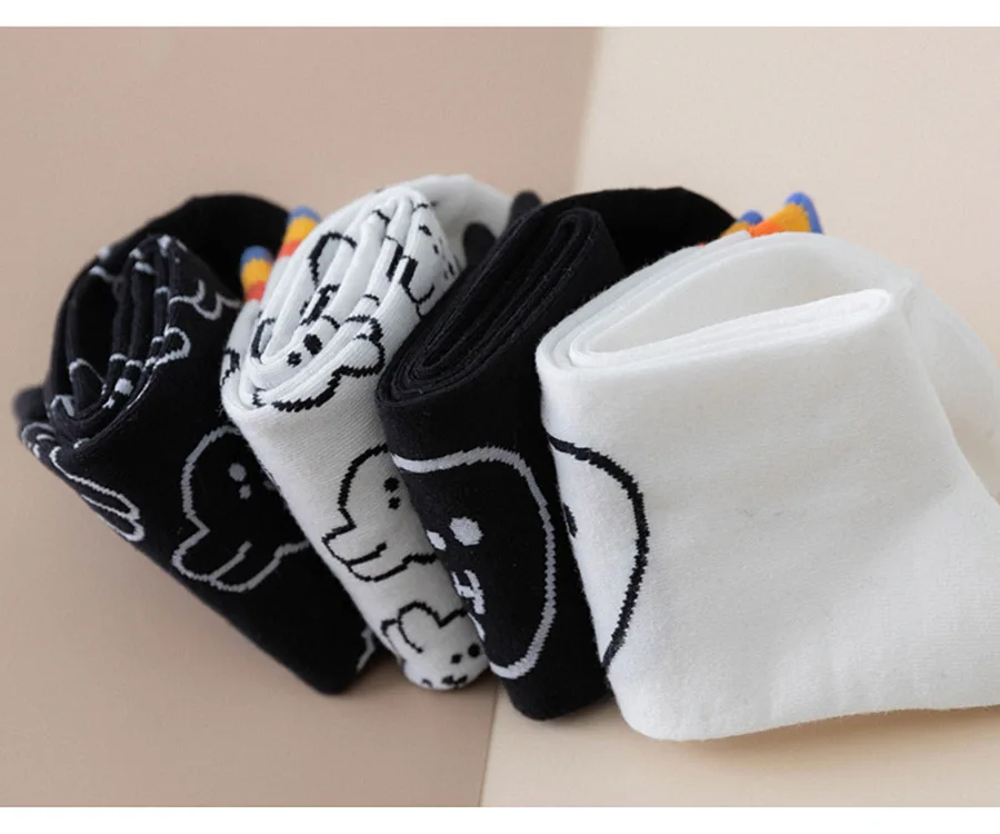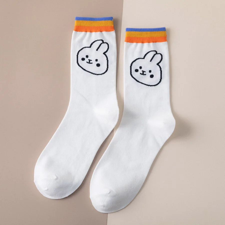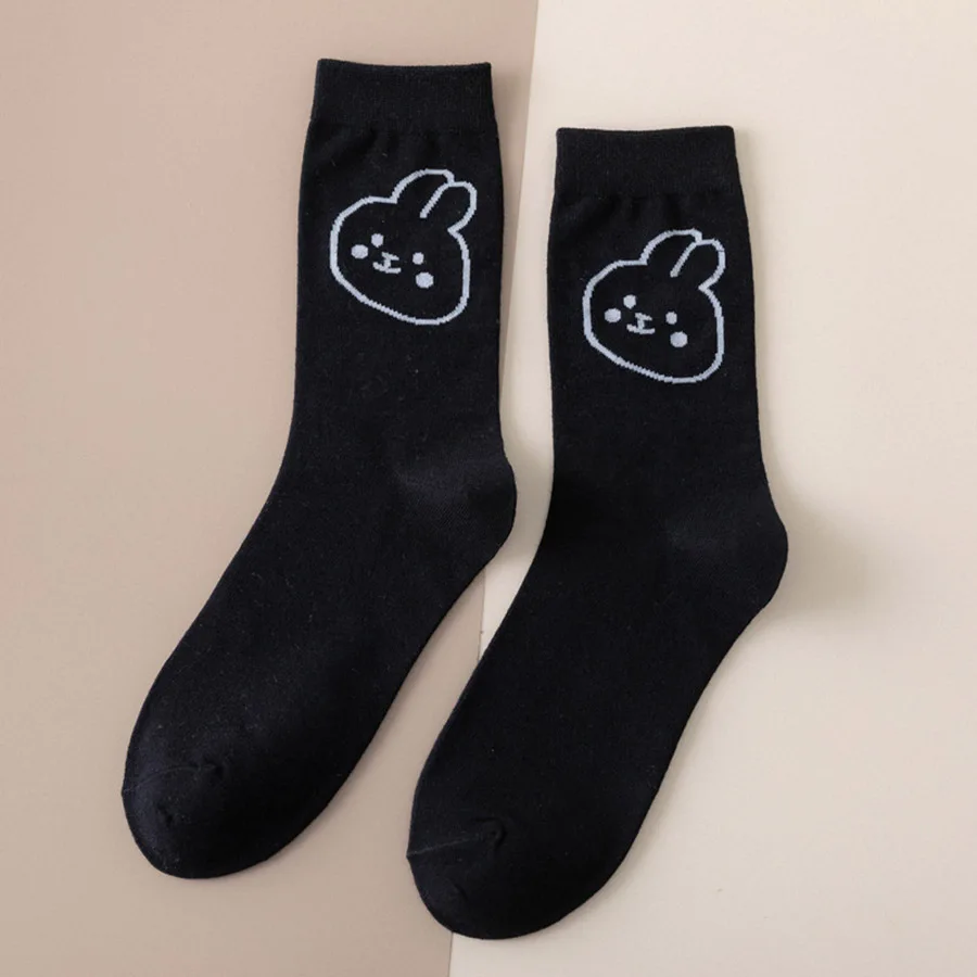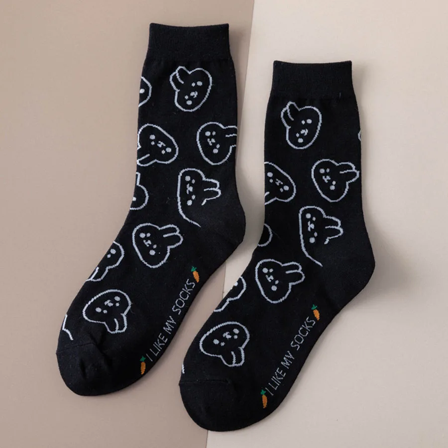 Носки женские хлопковые в стиле Харадзюку, смешные повседневные короткие штаны с милым мультяшным рисунком кролика, белые черные