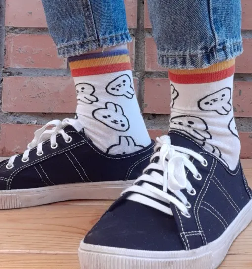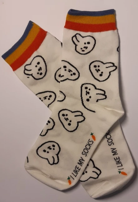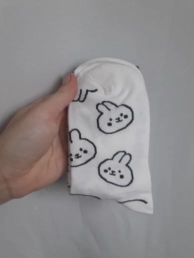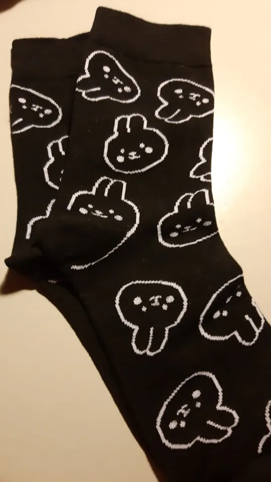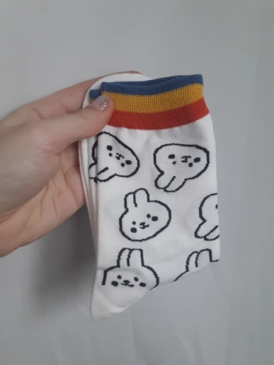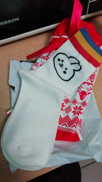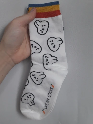 ВАУ! Носки прям как на фото. Мне очень понравилось как они выглядят. Шли они долго, но оно того стоило. Зайчики напечатаны хорошо. Пришёл заказ в новогоднем пакете. Меня все устраивает