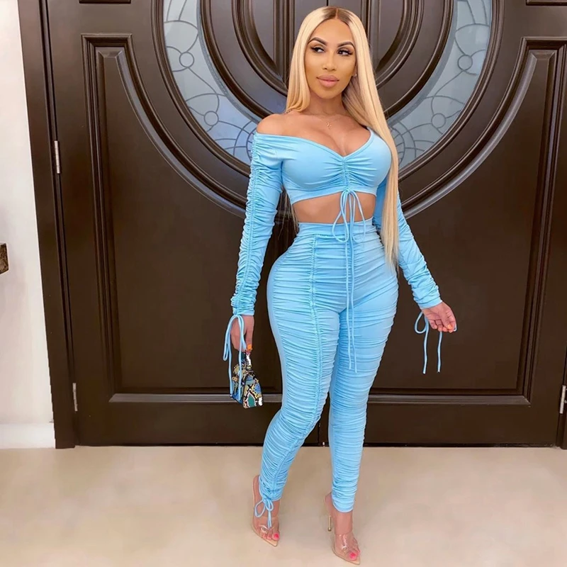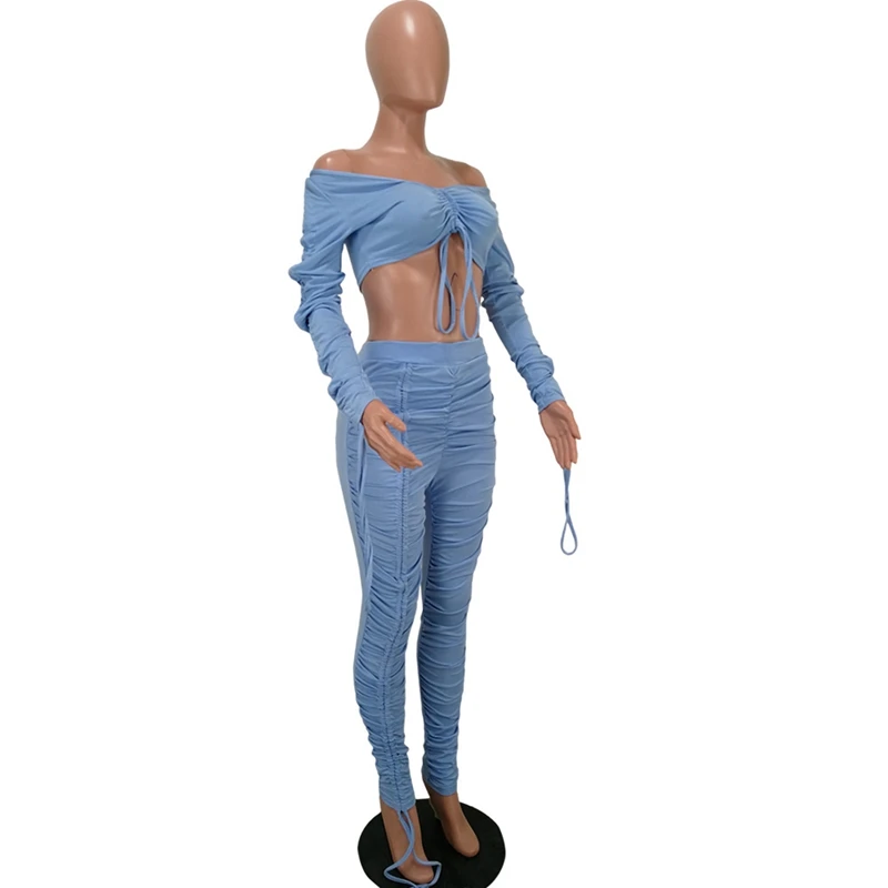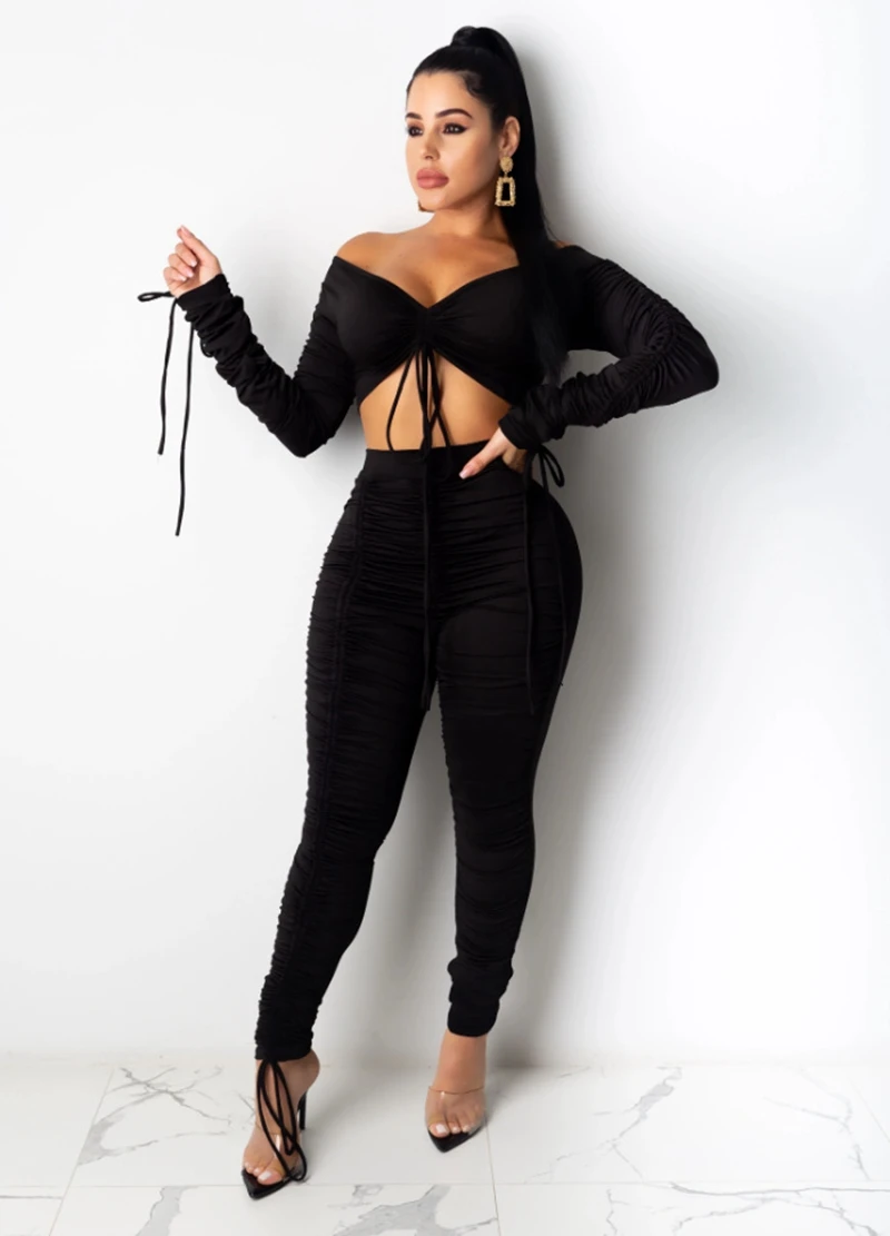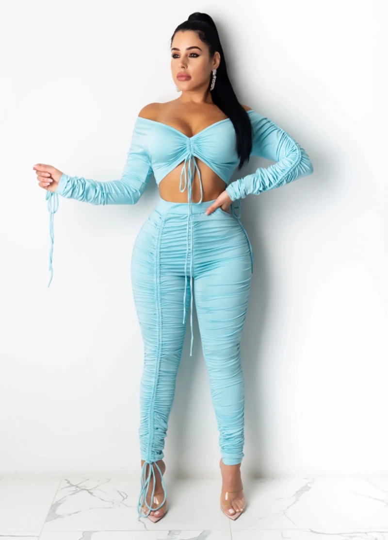 Комплект женский из двух предметов, короткий топ с длинным рукавом и штаны на завязках