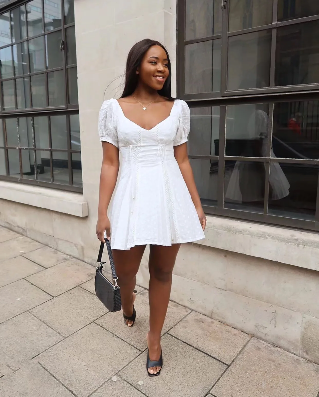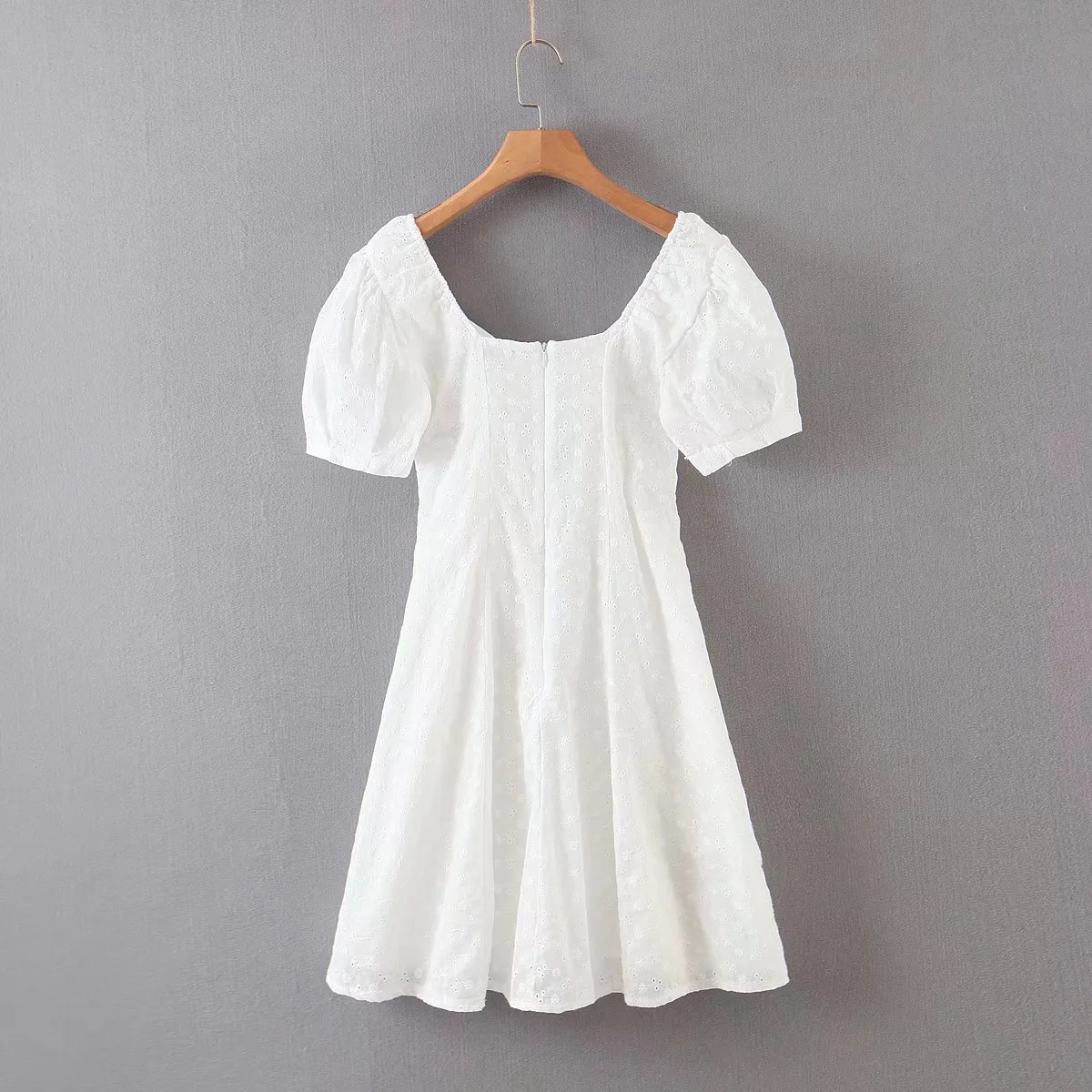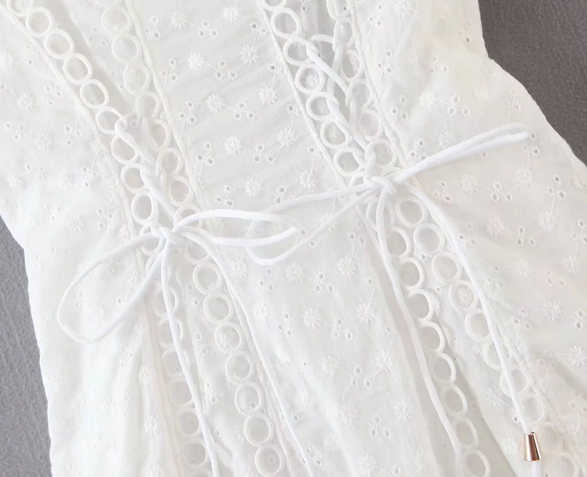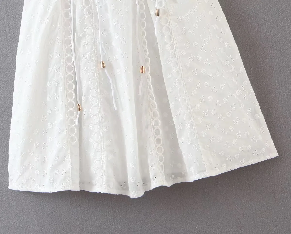 Женское кружевное мини-платье, белое короткое платье с вышивкой, вышивкой, перекрестной шнуровкой, коротким рукавом, для отдыха, 2020