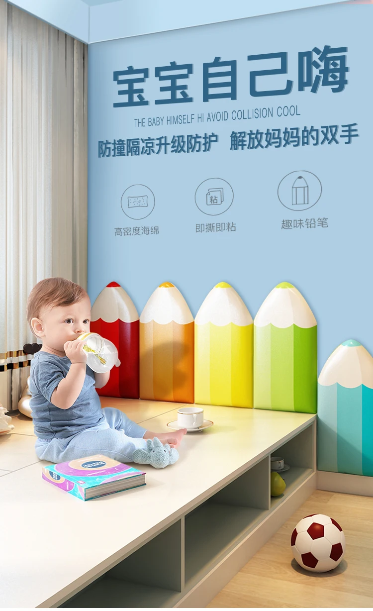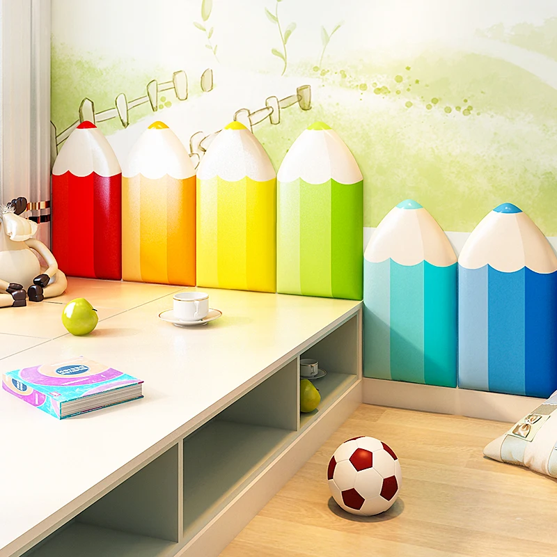 Настенные 3d обои-карандаши, клейкие Мультяшные Трехмерные настенные наклейки для детской комнаты, карандаш в мягкой упаковке, защита от столкновений