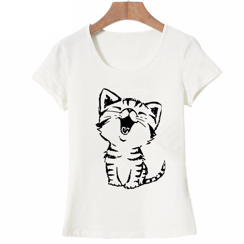 Футболка женская с коротким рукавом и круглым вырезом, повседневный смешной топ с кошкой, подарок для женщин, на лето