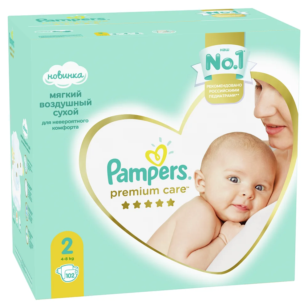 Pampers Premium Care Размер 2, 102 Подгузники, 4-8кг