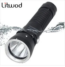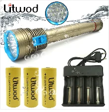 Фонарик для дайвинга Водонепроницаемый 150 м 15 часов ударопрочный, жесткий светильник, светодиодные лампы для самообороны Litwod с плавным затемнением алюминий