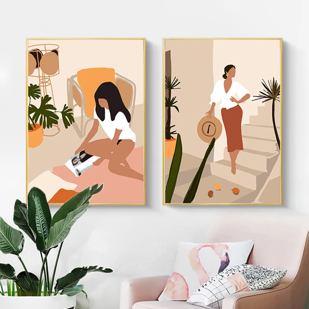 Винтажная абстрактная Мода для девочек, Минималистичная настенная живопись на холсте, скандинавские постеры и принты, настенные картины для декора гостиной
