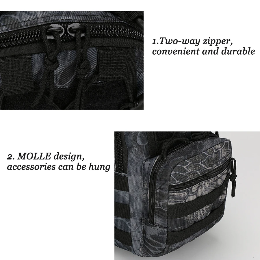 Особенности:-Он изготовлен из военной ткани oxford 600D, высокой интенсивности и долговечности.-Инновационный дизайн плечевого ремня с одинарной амбидекстрой.-Основное отделение с двумя карманами и передним нижним отделением с эластичными петлями-органайзерами и удержанием ключей.-Имеет вместительное основное отделение с застежкой на молнию, сетчатыми карманами и передними отделениями для хранения на молнии.-Закрепите на спине с помощью регулируемого нагрудного ремня и застежки набедренного ремня.-Мягкие и регулируемые плечевые ремни снимают давление на плечи во время переноски больших нагрузок.-Дышащая сетчатая подложка обеспечивает комфортное ощущение в более жаркую погоду.-Сверхпрочная ручка для переноски и перетаскивания.-Двойная молния вытягивается на каждом отделении для удобного доступа.-Регулируемый и упорный плечевой ремень.-Различные точки крепления для модульного расширения.Для: Велоспорт, приключения, путешествия, альпинизм, туризм, кемпинг, рыбалкаМатериал: Ткань Оксфорд 600DМатериал Оксфорд: 600D ОксфордОсобенности: Тактический стильЦвет: Черный, армейский зеленый, хаки, CP, ACU, Desert digitalВес посылка: 0,400 кгРазмер изделия(Д x Ш x В) : 21x16x27 см/8,27x6,30x10,63 дюймаПосылка ходит: 1 тактический рюкзак через плечо