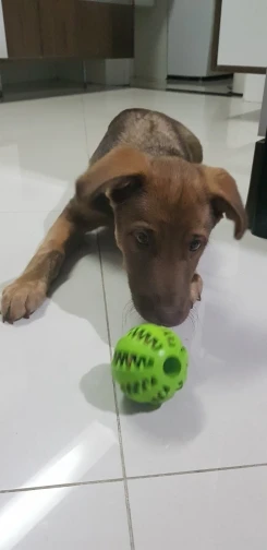 Уже второй такой мяч, и он замечательный. Собакен в восторге и любит его больше других игрушек. Первый продержался два года и увы начал крошиться от постоянного грызения. Корм не кладём, псу нравится и так. Доставили на Урал очень быстро.