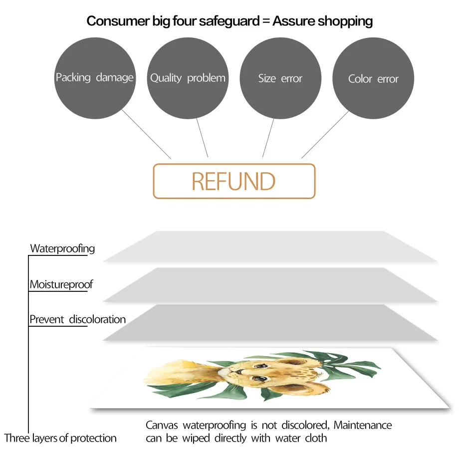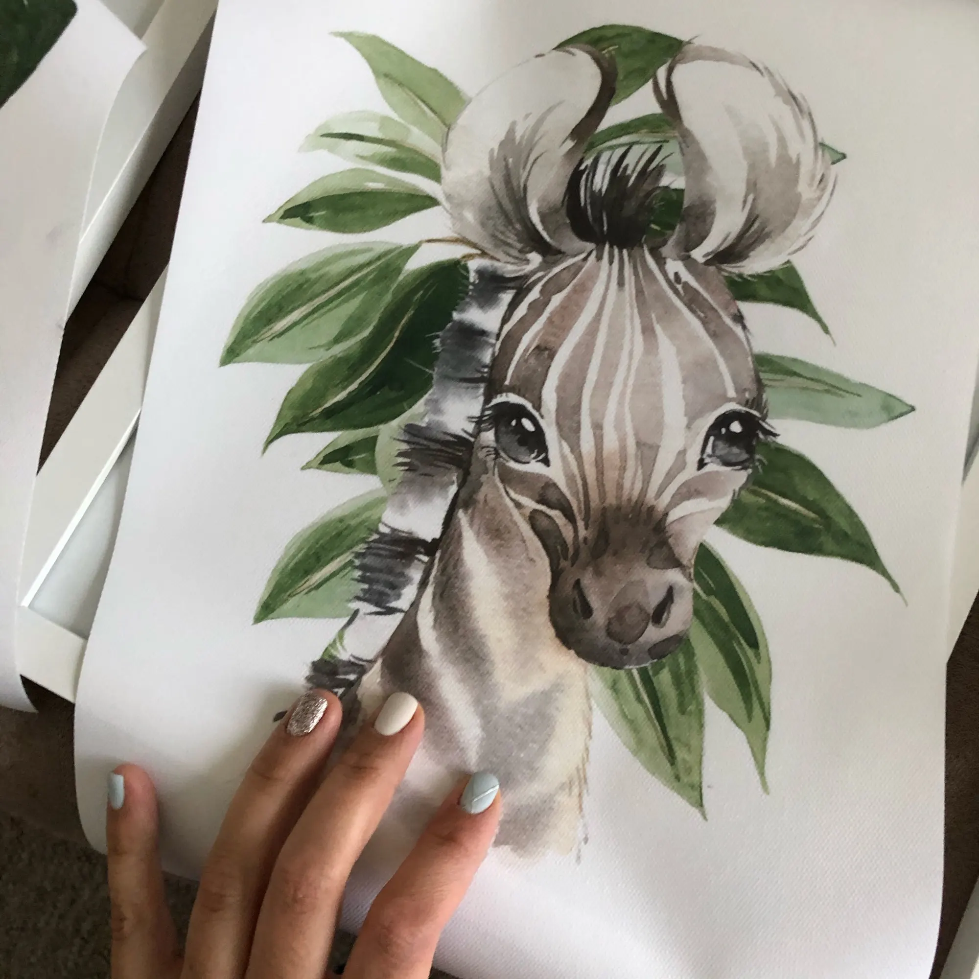Детский жираф, тигр, Зебра, лист носорога, Картина на холсте, скандинавские постеры и принты, фотографии животных на стену, декор для детской комнаты