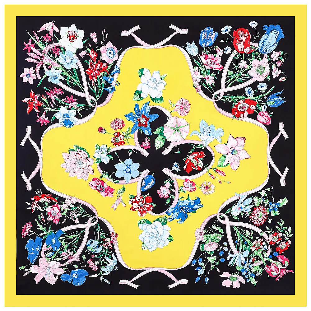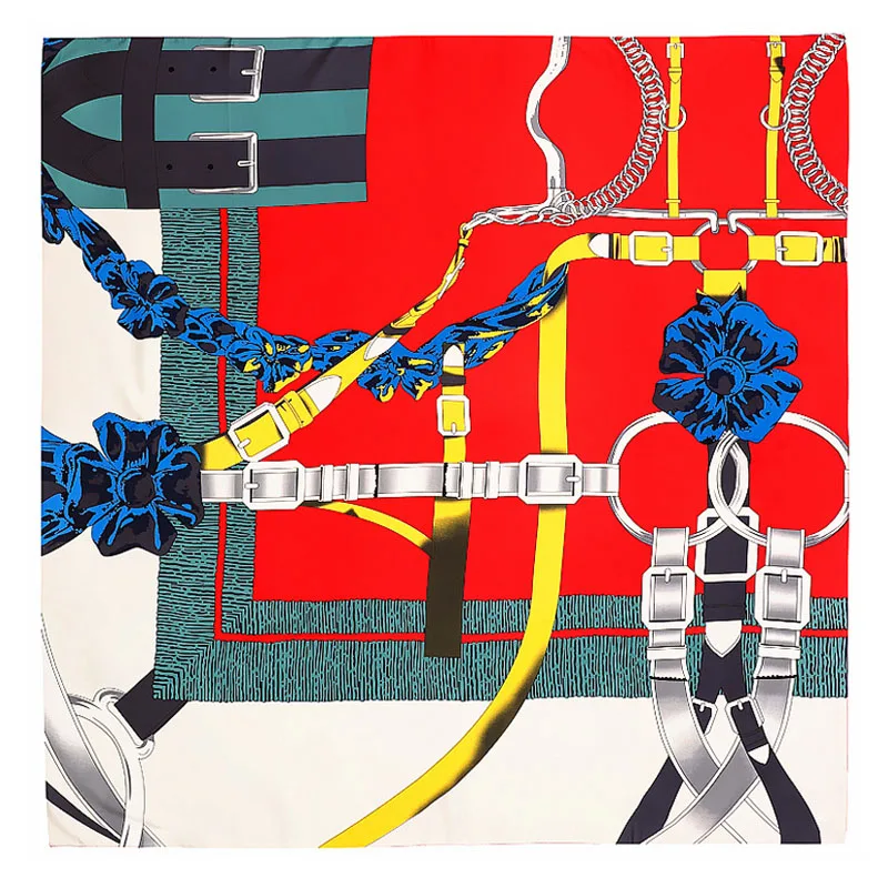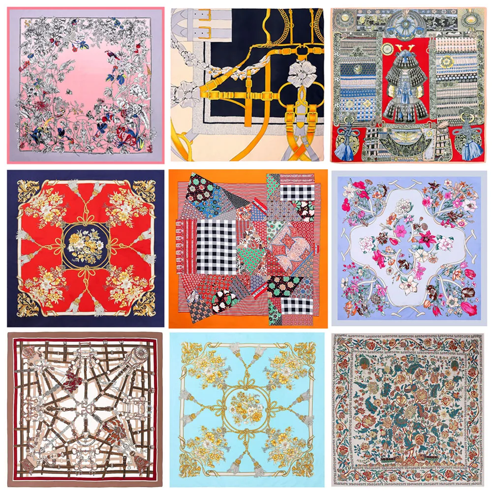 Название:Высококачественный Шелковый квадратный шарф, повязка на голову с цепочкой, женский роскошный брендовый шелковый шарф, шаль из пашмины 130*130 см