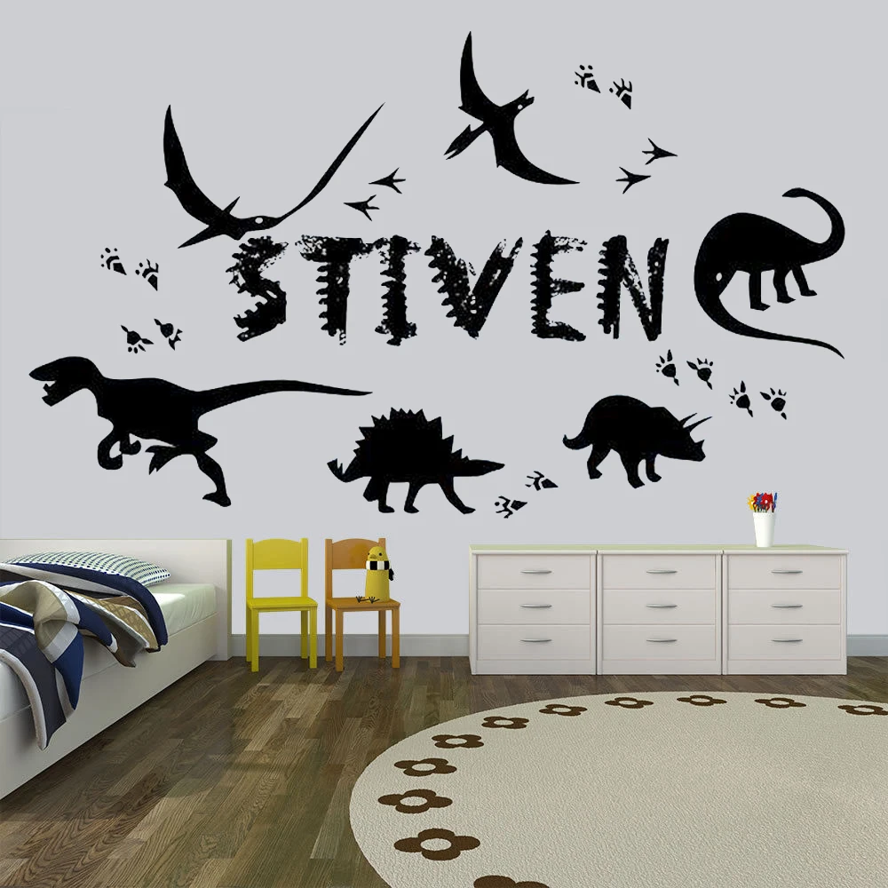 Динозавр на заказ Ваше имя T-Rex настенные наклейки Детские фотообои для спальни для детей девочек мальчиков подростков Декор для комнаты HY692