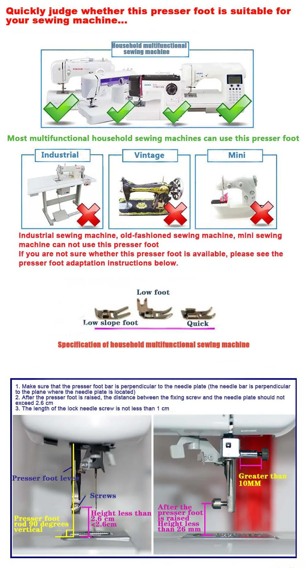 Описание:Подходит для многофункциональных швейных машинБыстрая установка, простая, удобная и практичная.Если ваша машина имеет 11 стежков или более стежков, вы можете использовать скользящую ногу на машине.Подходит для Brother, Janome, Singer, Babylock, Kenmore швейных машин, делает окантовка шитье более легким. Спецификация:Материал: металлЦвет: серебристыйРазмер:4/8 дюймов обжимной прижимной лапки (13 мм/0,51 "обжимной)6/8 дюймов обжимные лапку (19 мм/0,75 "обжимные клещи)8/8 дюймов обжимной лапка прижимной (25 мм/0,98 "обжимной)Количество: 3 шт./компл. Посылка включает в себя:3 x ножки швейной машины