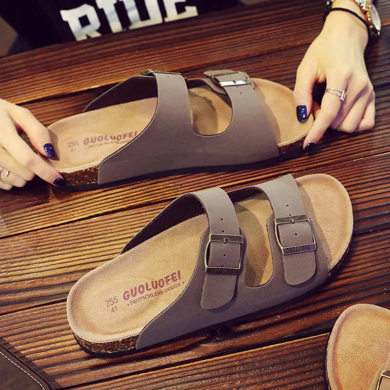 Шлепанцы мужские кожаные, на пробковой подошве, 35-46, 2020