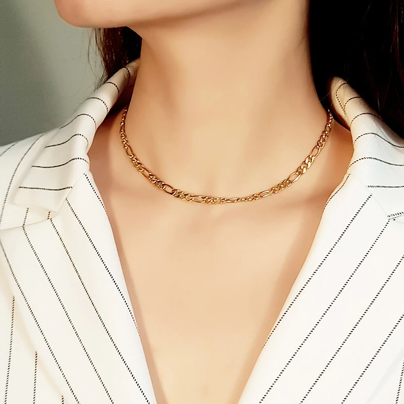 Vnox шик прямоугольник цепочка колье для Для женщин, не вызывают аллергию, Нержавеющаясталь Фигаро ссылка воротниковые ювелирные, подарок для женщины