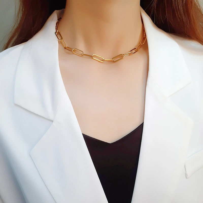 Новое ожерелье-Скрепка из нержавеющей стали, многослойное прямоугол...