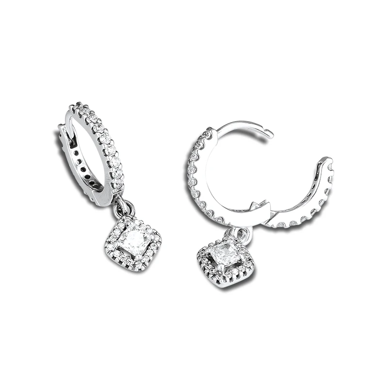 Серьги-кольца квадратные из серебра 925 пробы женские, бижутерия, х...