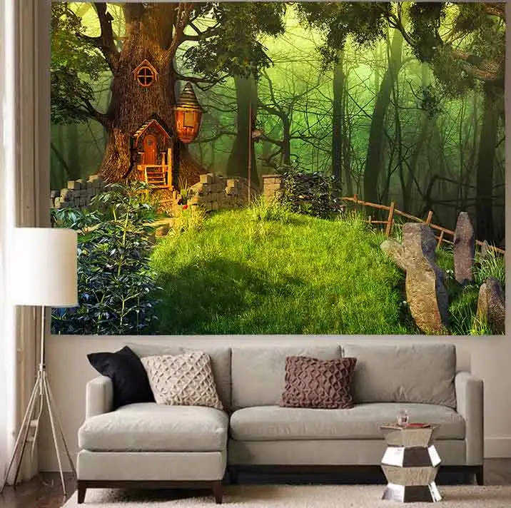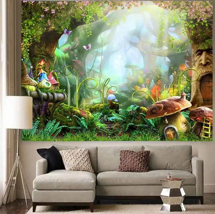 Психоделический лес Simsant, гобелен, замок и грибы, сказка, настенный подвесной гобелен для гостиной, спальни, декор для дома и общежития