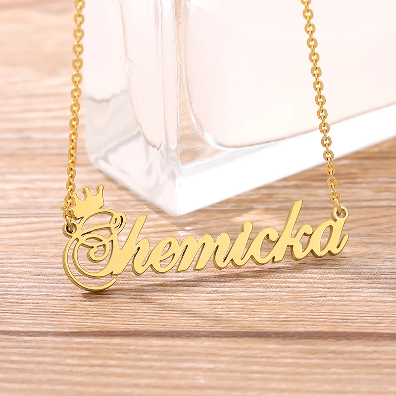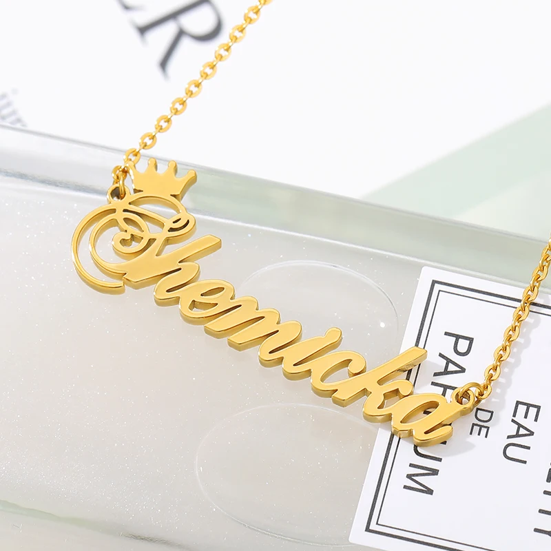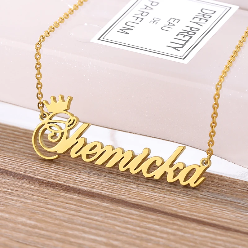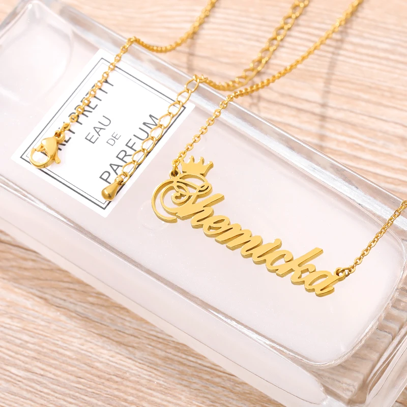 Ожерелье с именем короны на заказ, именная табличка, ожерелье для женщин, персонализированная цепочка из нержавеющей стали под золото, Индивидуальные ювелирные изделия принцессы BFF