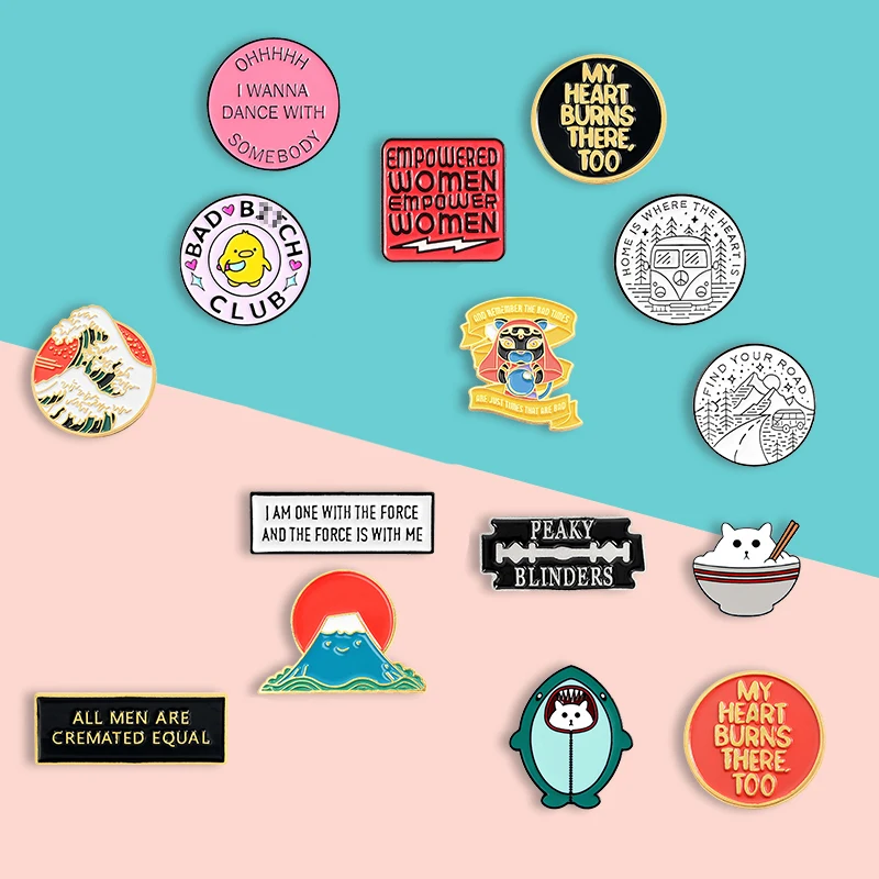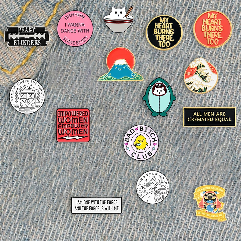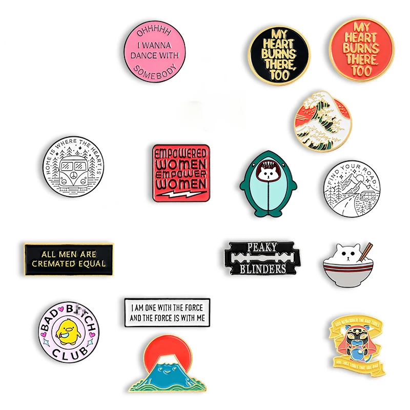 Мультяшная креативная брошь, Круглый индивидуальный значок, маленькая Желтая утка, геометрические буквы, Акула, волны, кошка, брошь на лацкан Fuji