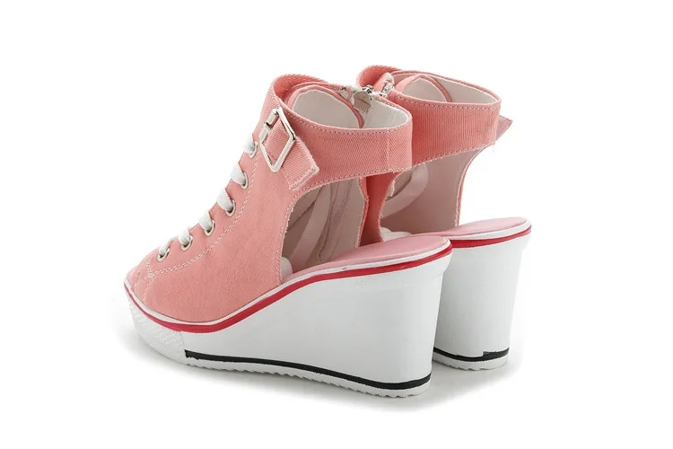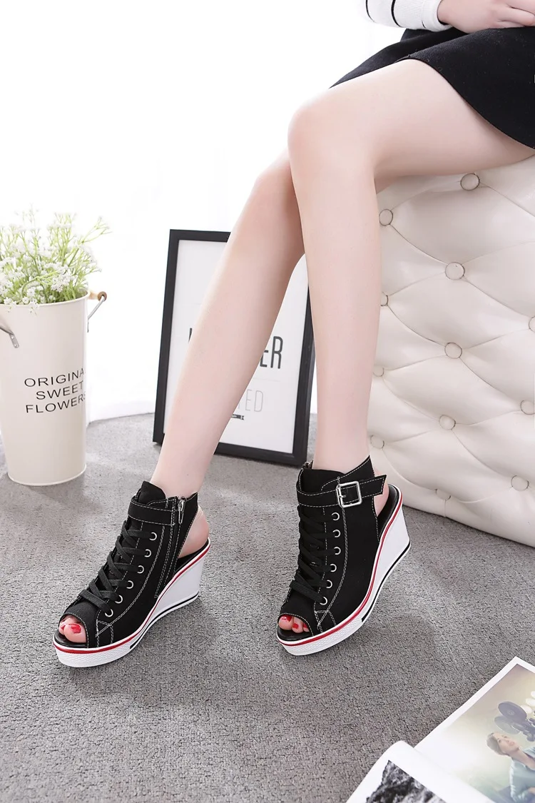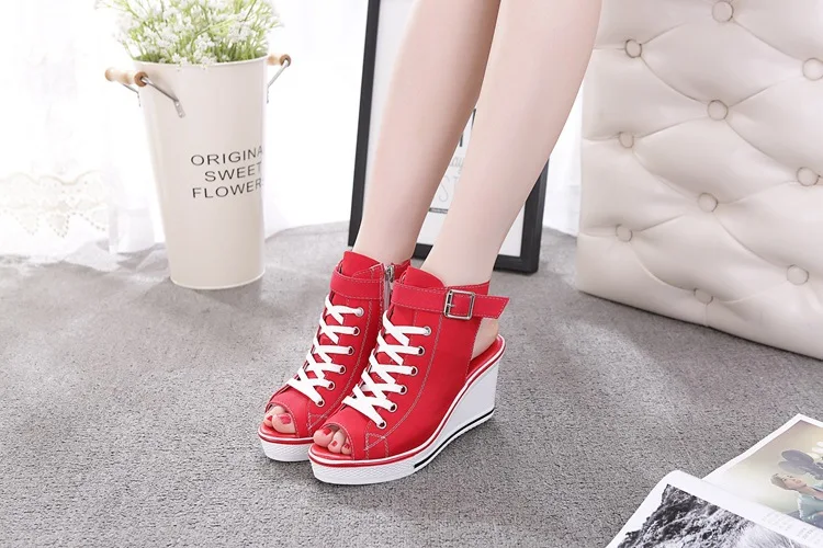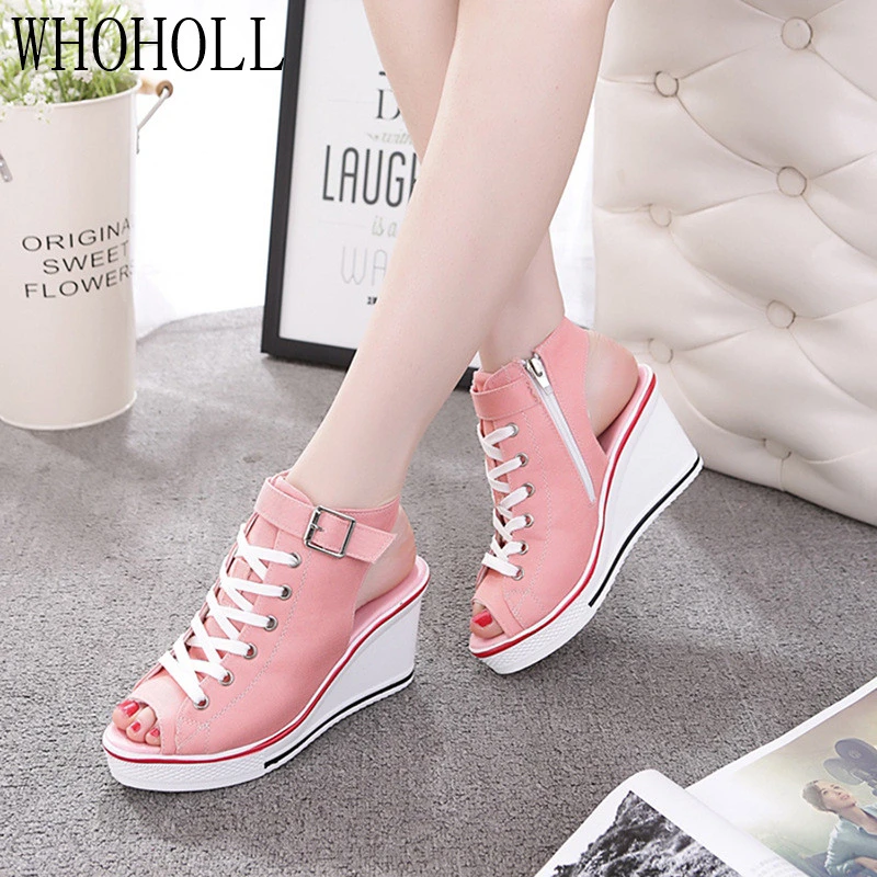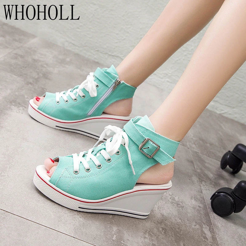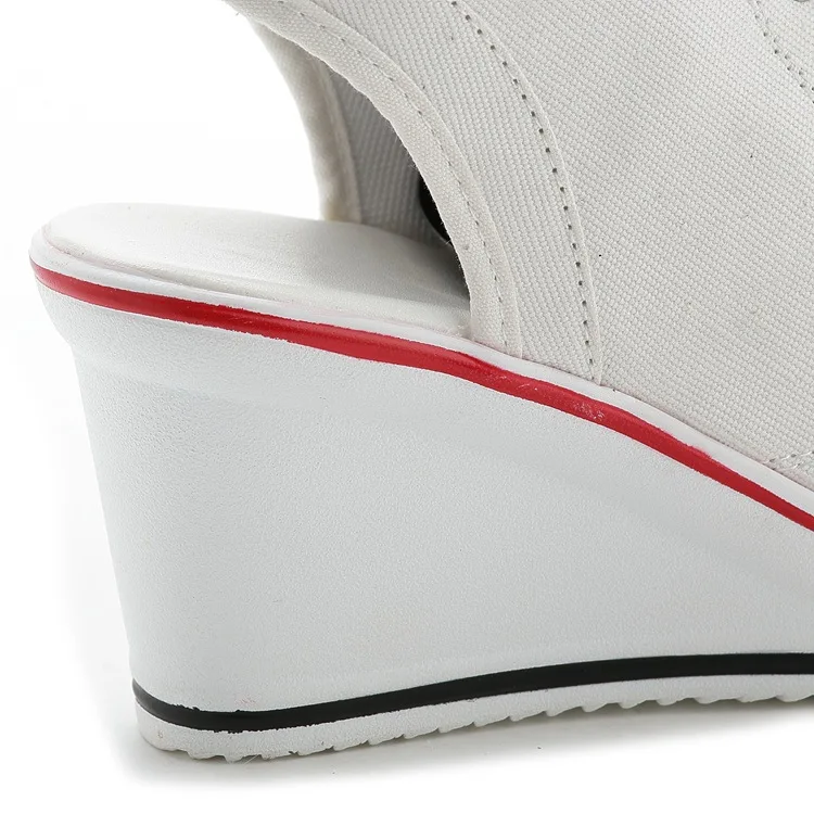 Женские холщовые босоножки на танкетке, босоножки большого размера с открытым носком и вырезами, Новинка лета 2020