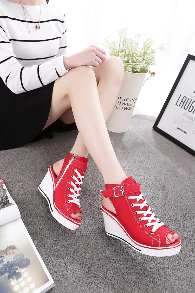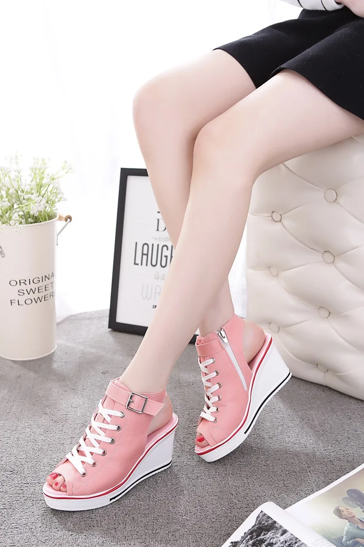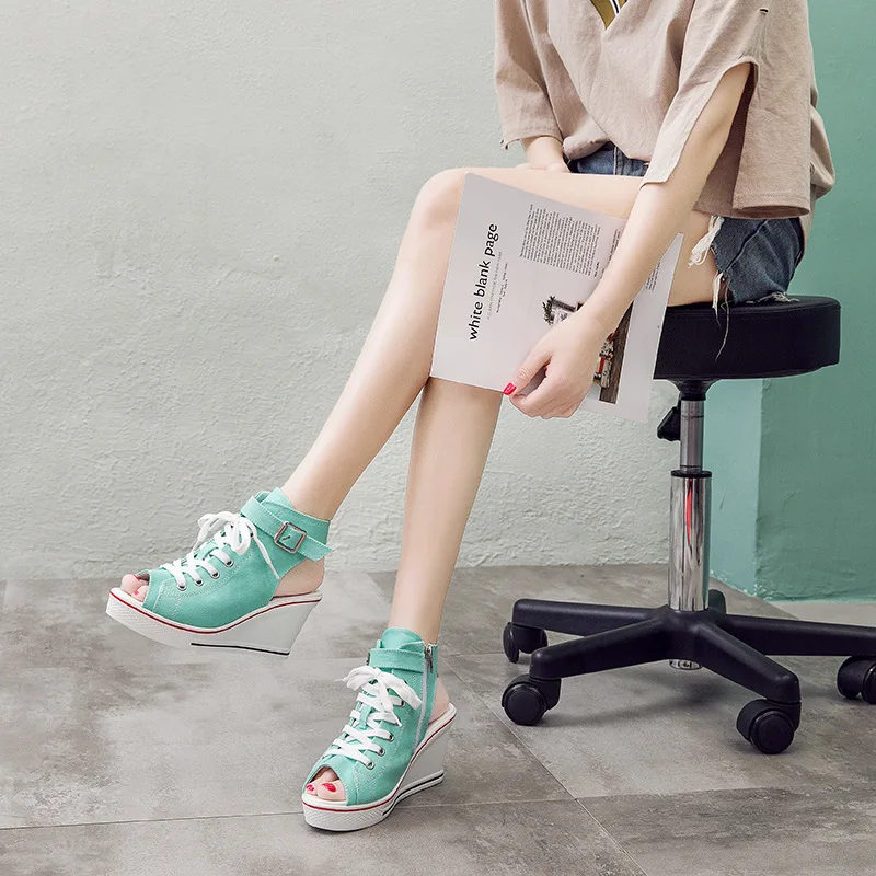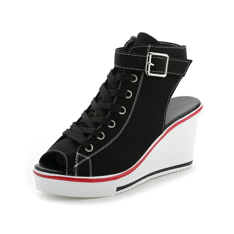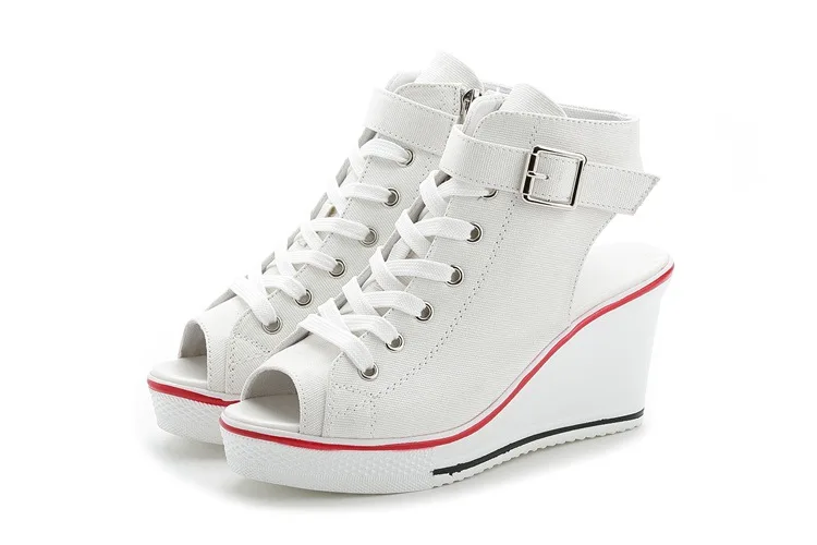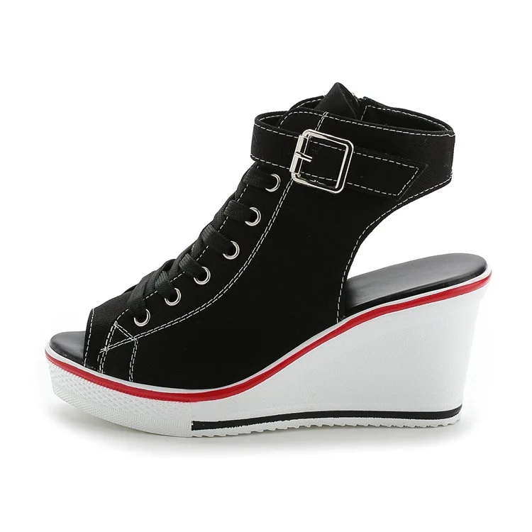 Женские холщовые босоножки на танкетке, босоножки большого размера с открытым носком и вырезами, Новинка лета 2020