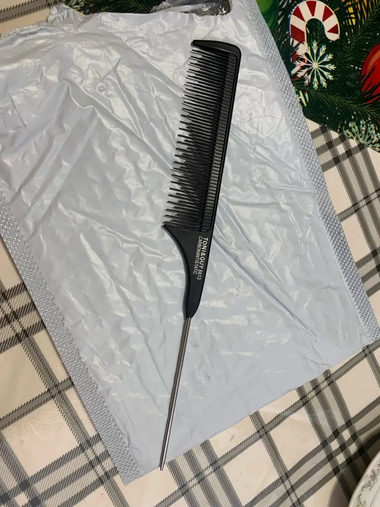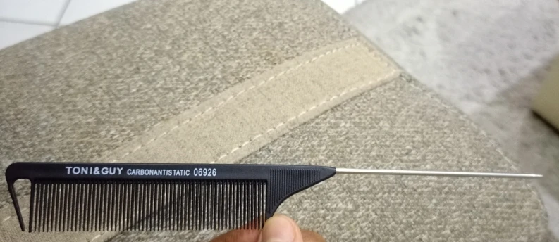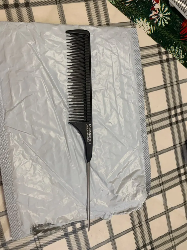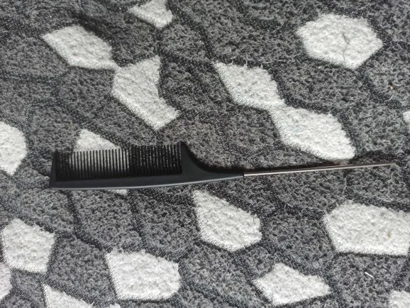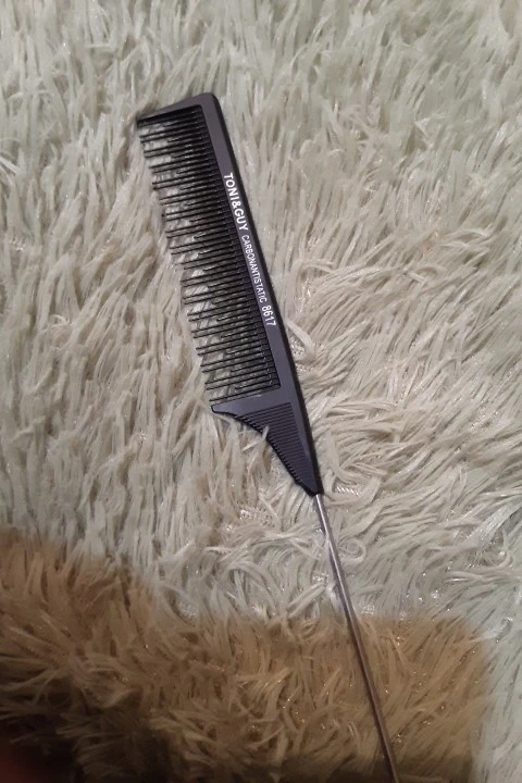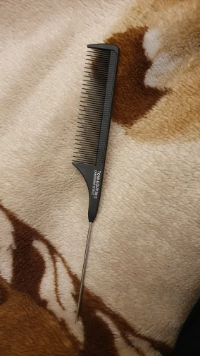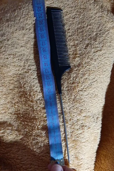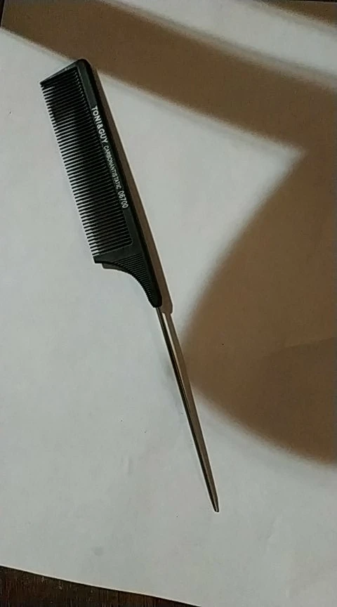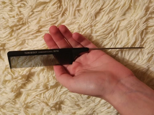 На вид хорошая расчёска, крепкая, достаточно длинная. Зубчики тонкие, частые. Единственное, железный кончик рукоятки не достаточно тонкий, или, может быть, даже непозволительно тупой, идеально ровный пробор таким не сделаешь. Надо будет заточить самостоятельно