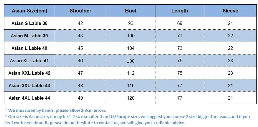 Asian size S,M,L,XL,XXL,3XL,4XL