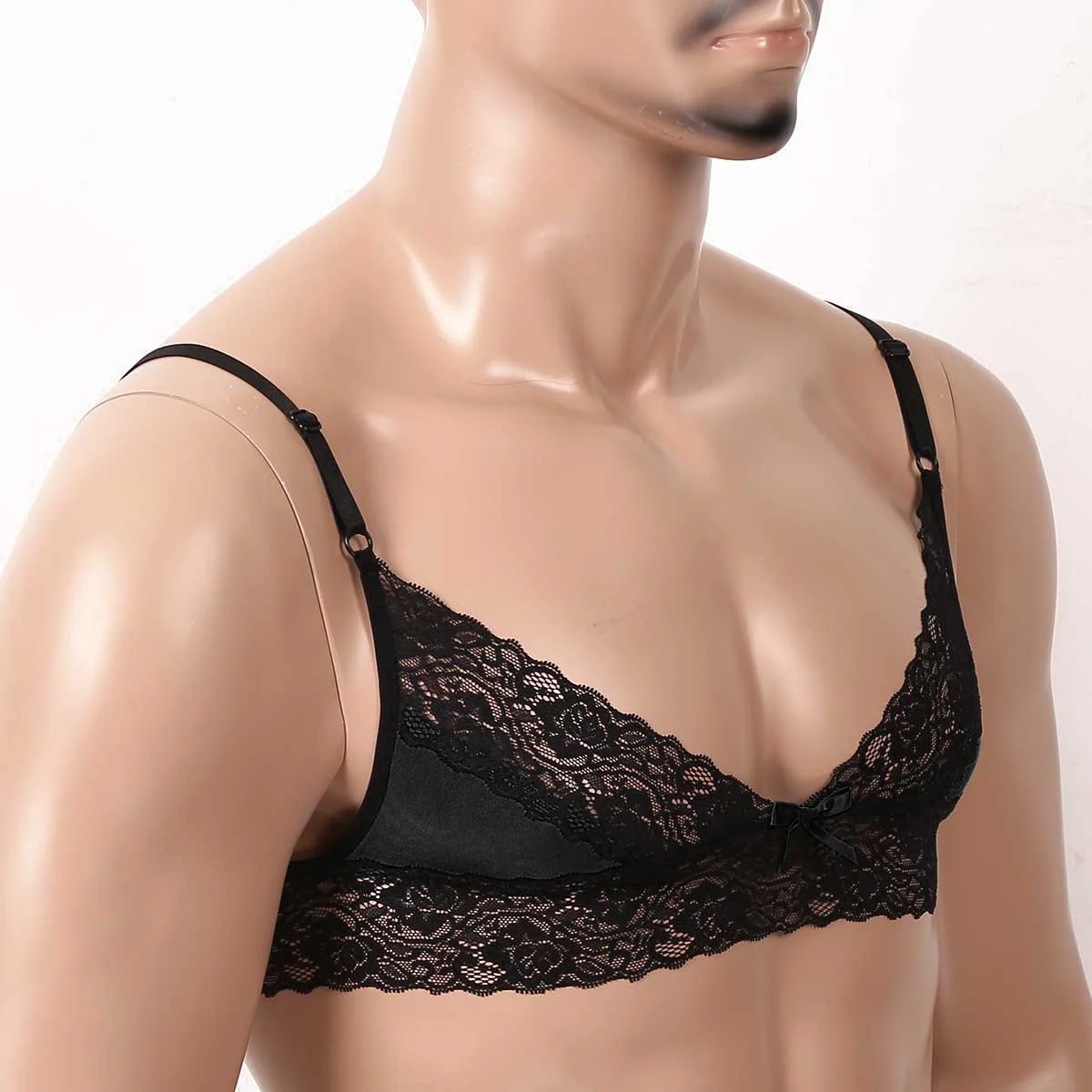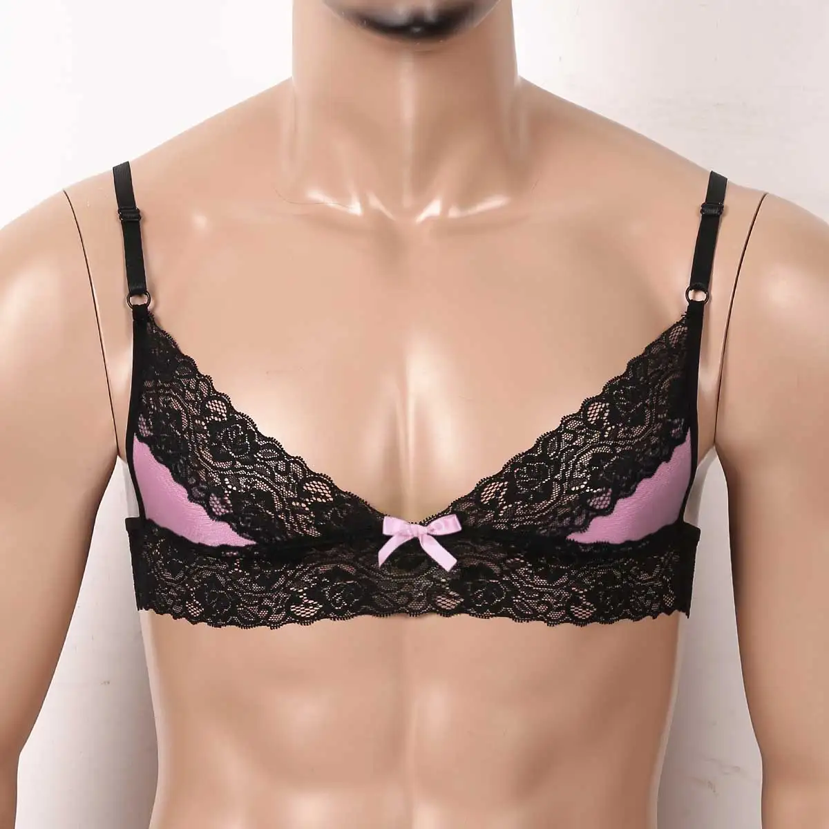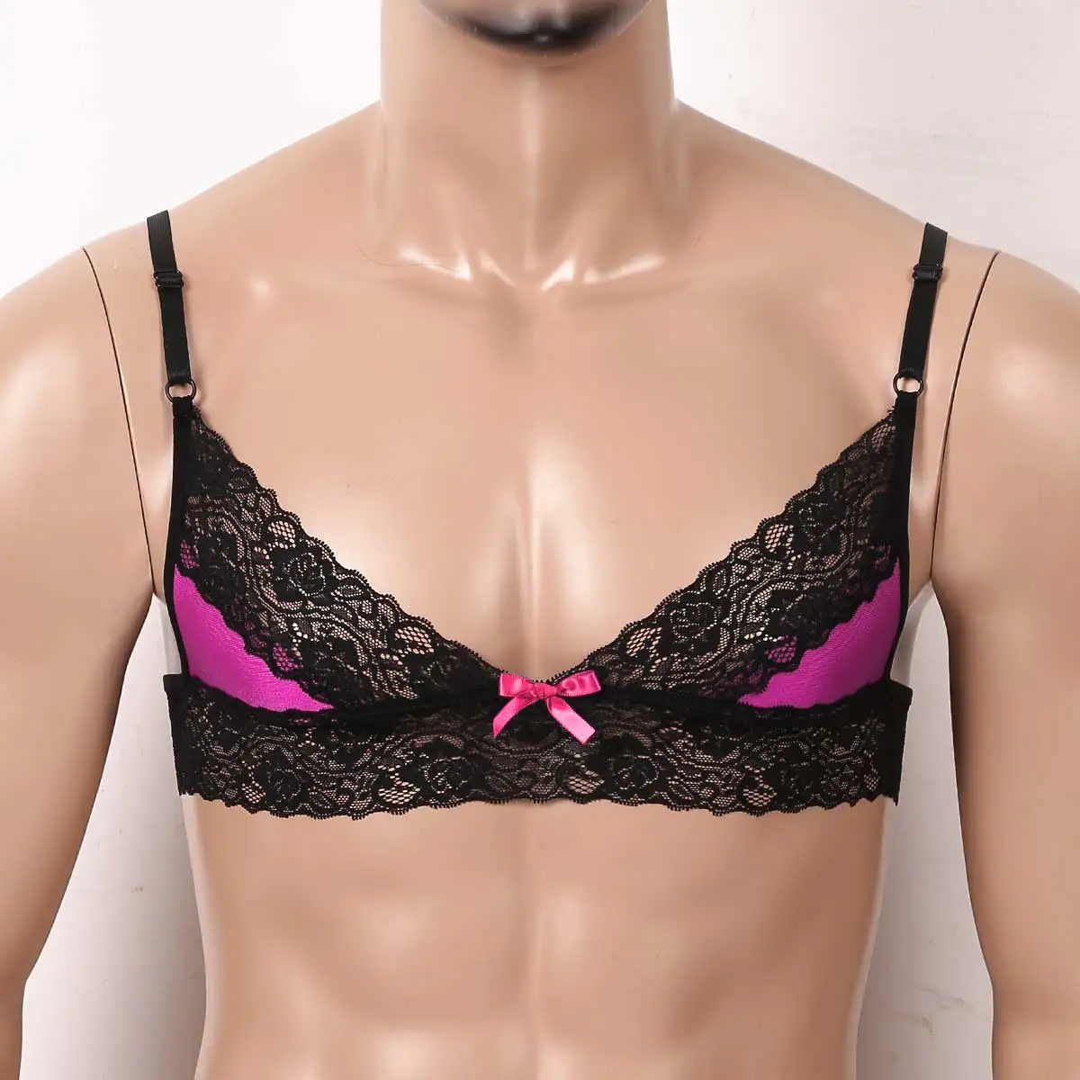 Сексуальный мужской бюстгальтер, мужской Эротический бюстгальтер с цветочной кружевной отделкой, без косточек, без подкладки, топы, гей-белье, кружевной бюстгальтер, мужской бюстгальтер для геев