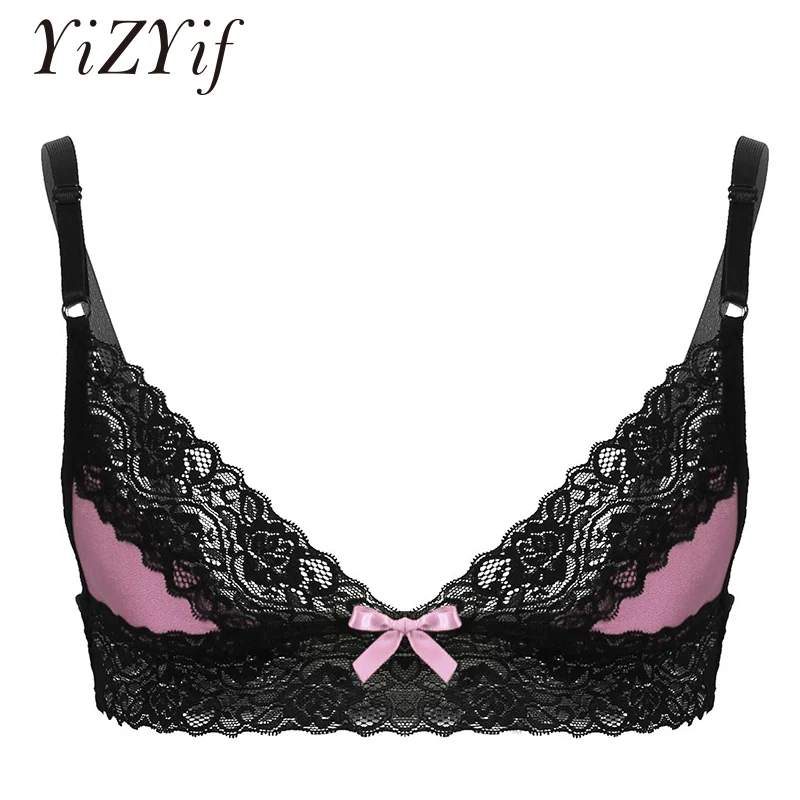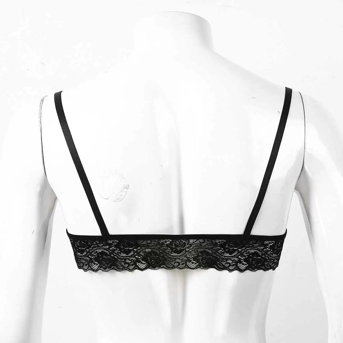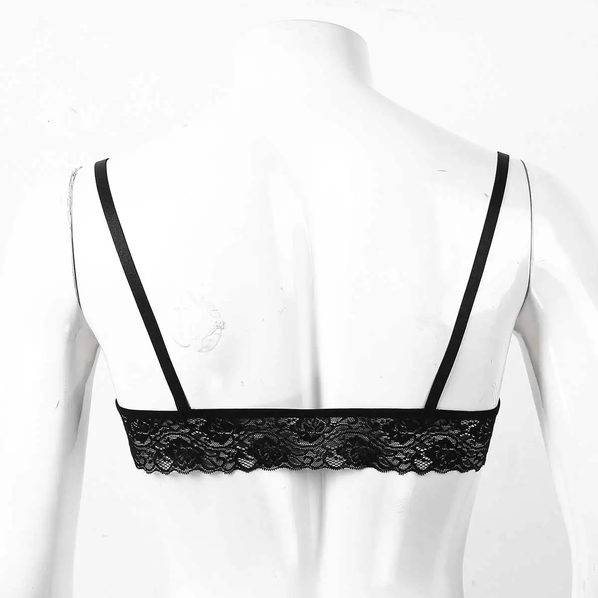 Сексуальный мужской бюстгальтер, мужской Эротический бюстгальтер с цветочной кружевной отделкой, без косточек, без подкладки, топы, гей-белье, кружевной бюстгальтер, мужской бюстгальтер для геев