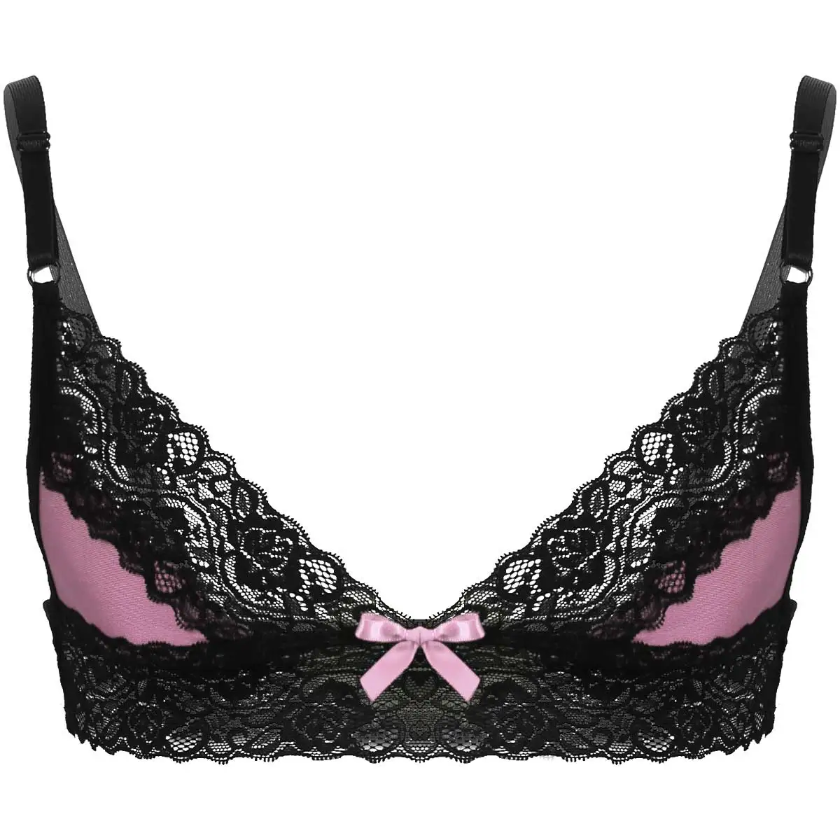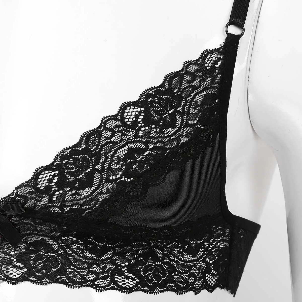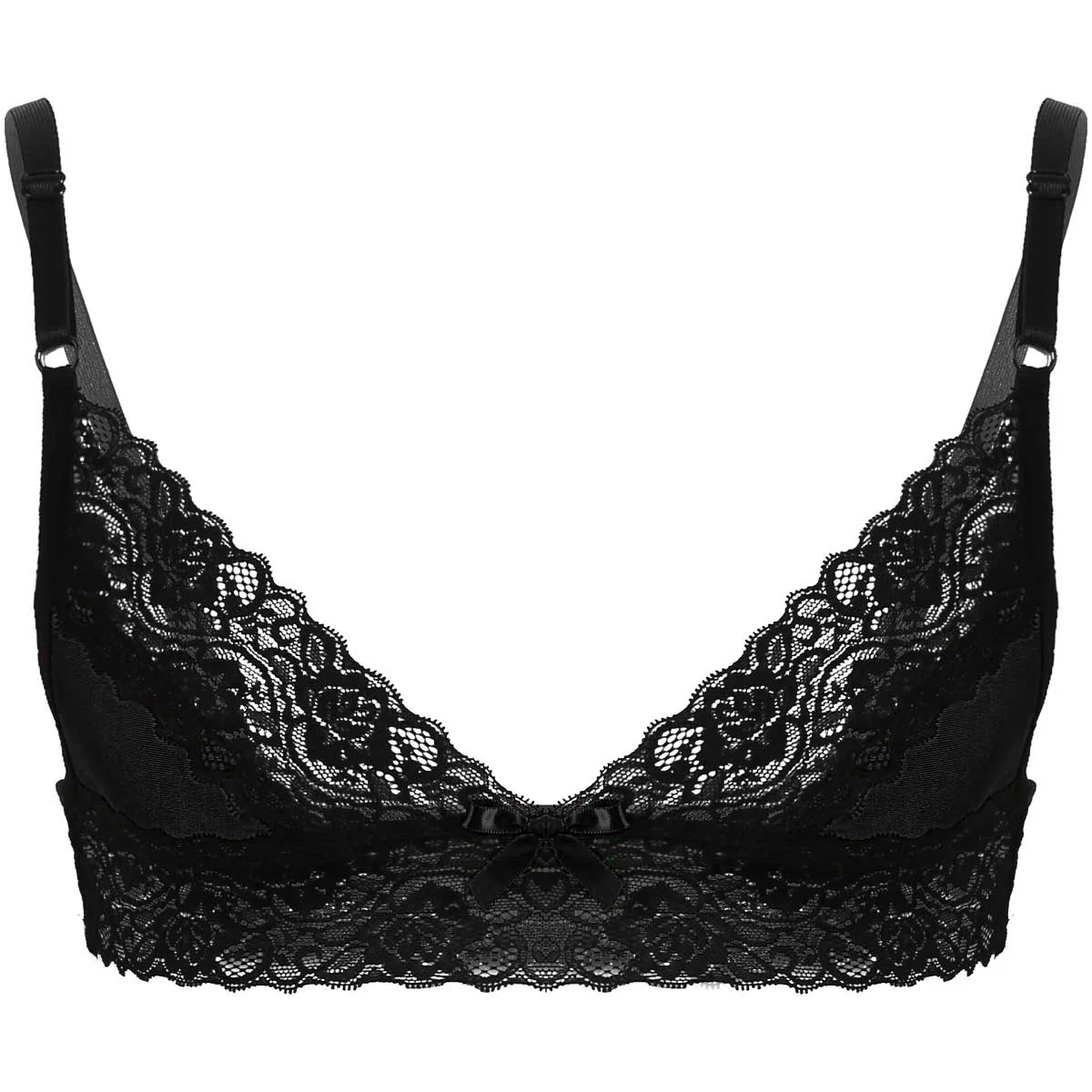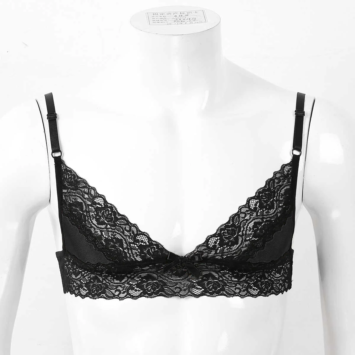 Мужской Эротический бюстгальтер без косточек и без подкладки. Регулируемые бретельки-спагетти, Треугольные чашечки с цветочной кружевной отделкой, застежка-липучка. Хорошая эластичная ткань, мягкая и удобная в носке, сделает ваше тело полностью расслабленным. Идеально подходит для специальной ночи, Дня Святого Валентина, подарков для медового месяца, свадебной ночи, свадебных подарков. Пожалуйста, проверьте размер перед покупкой, ручная/машинная стирка в холодной воде.