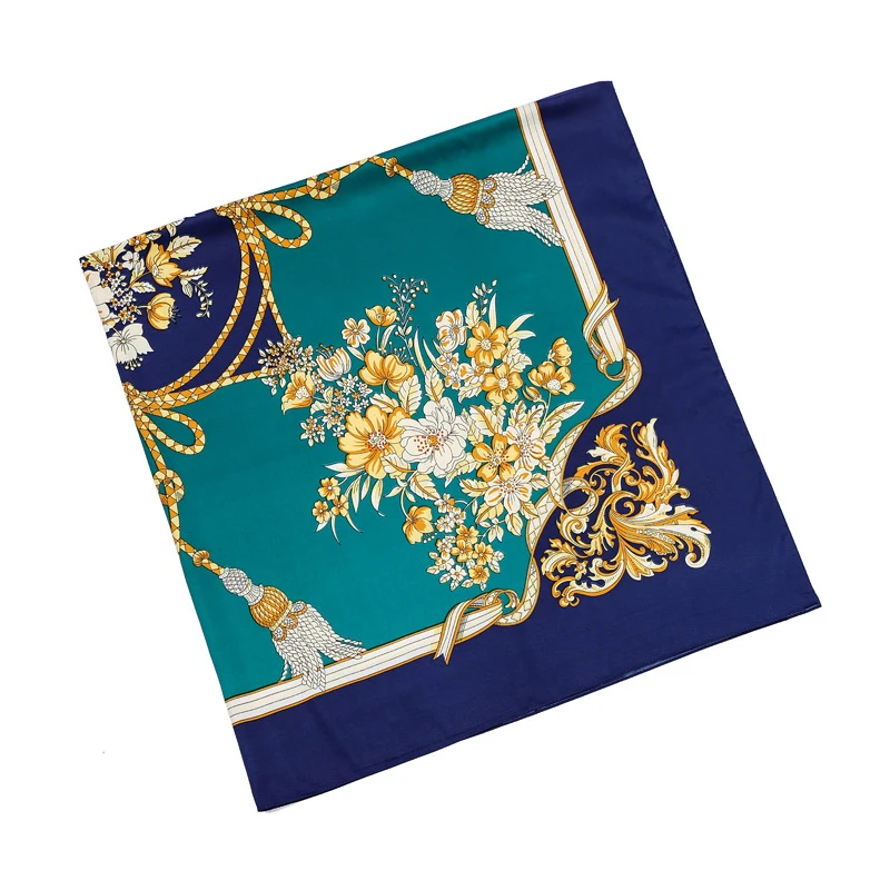 Высокое качество Шелковый шарф Женские Элитный бренд площадь полосатый шарф с цветочным принтом шаль Пашмина саржевого печати большие шелковые шарфы 130*130 см