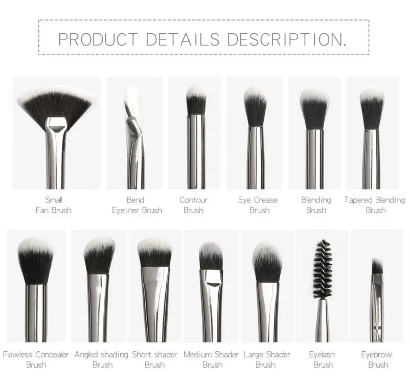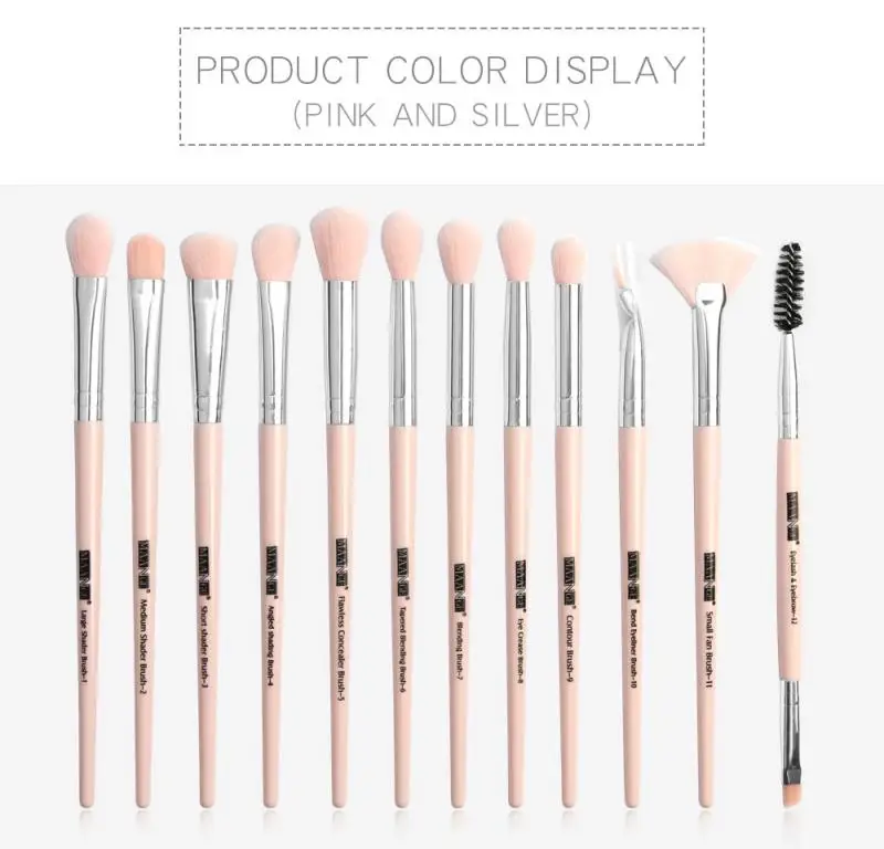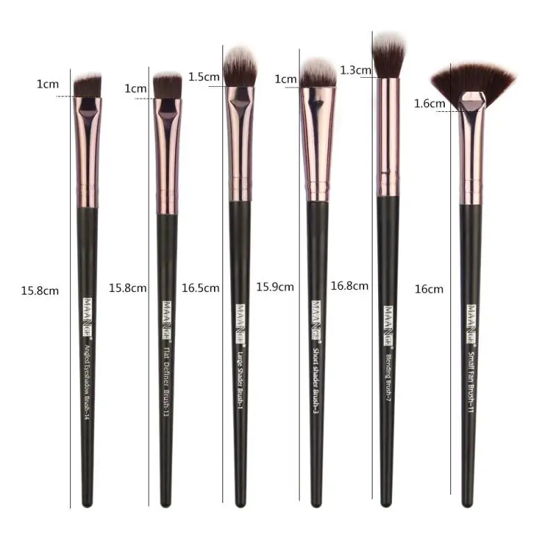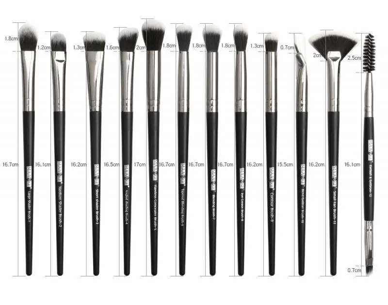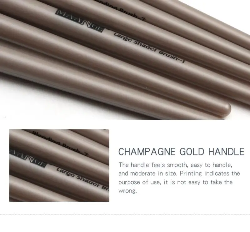 Все кисти изготовлены из нейлонового волокна, легко наносятся на косметику.