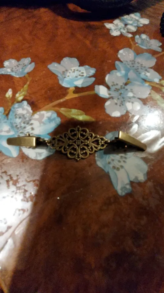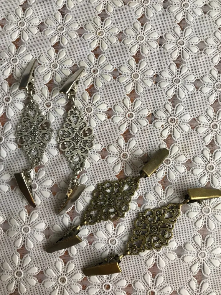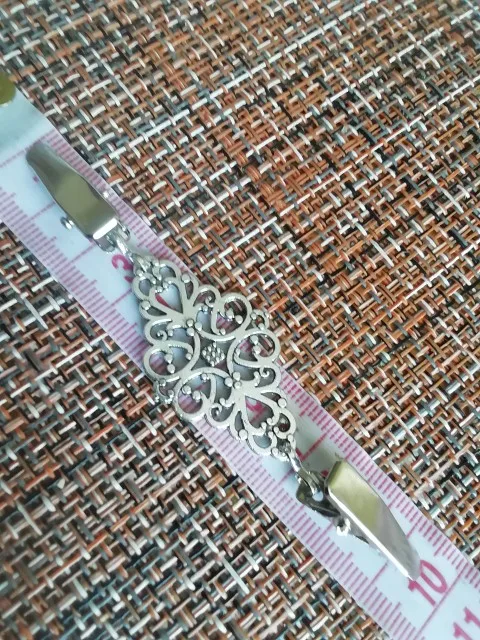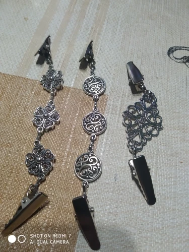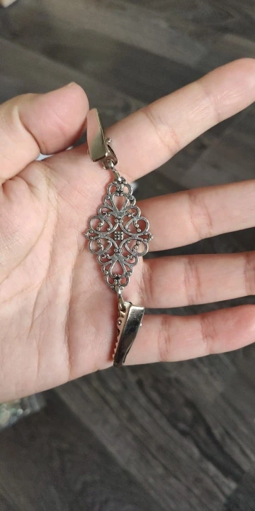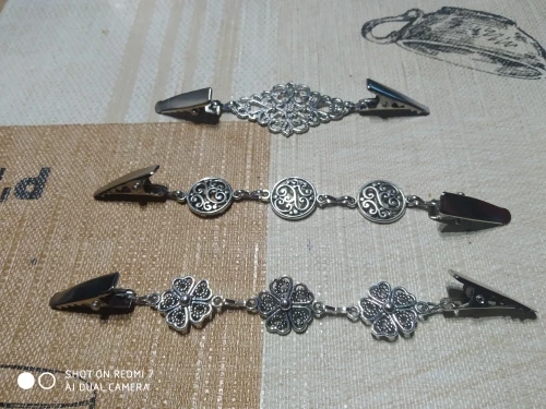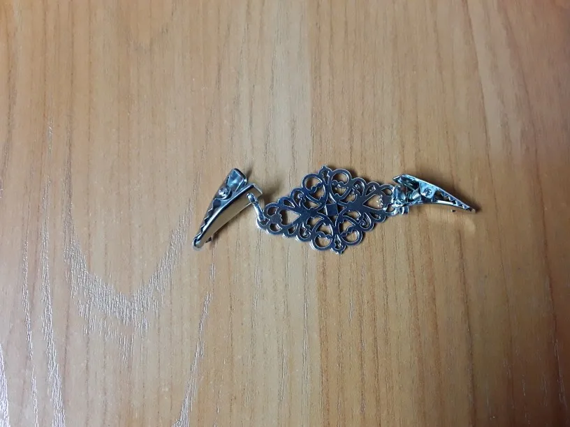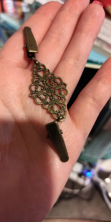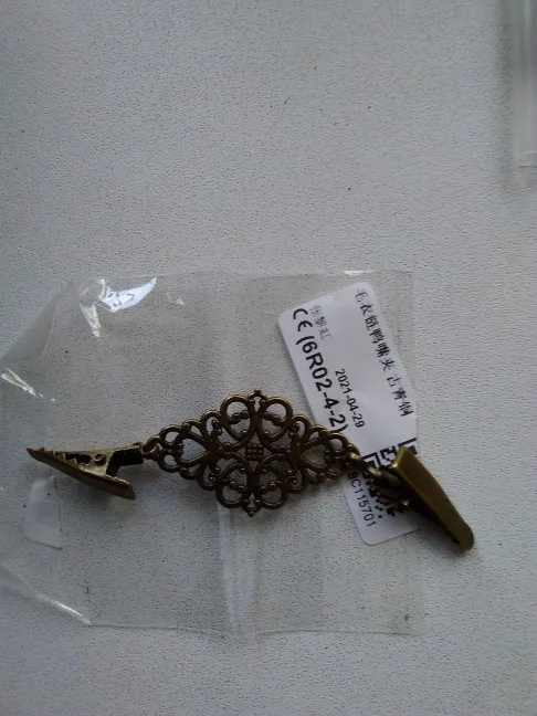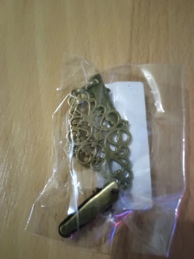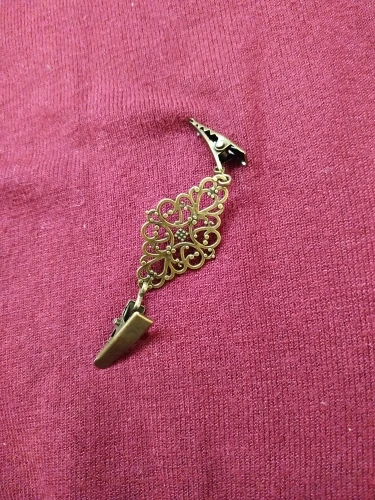 Заколка была нужна для кардигана. Изящная и хрупкая, только для нетолстых вещей. Думаю, прослужит недолго, но сделана симпатично. Винтаж.