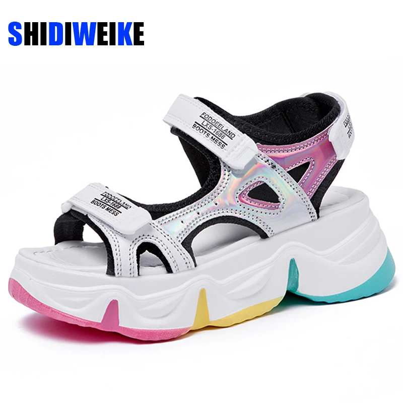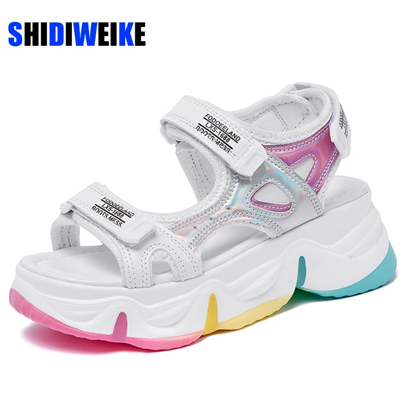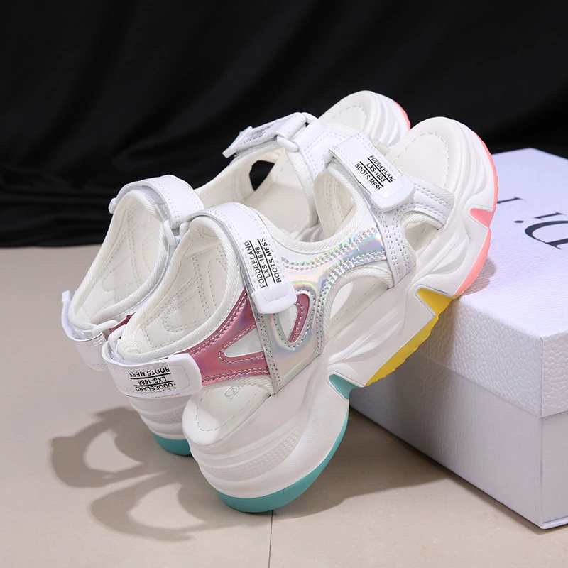 Сандалии на платформе, женские летние женские туфли на толстой подошве; Радужные крючок на застежке-липучке; Обувь на танкетке; Обувь с открытым носком обувь на платформе AB475