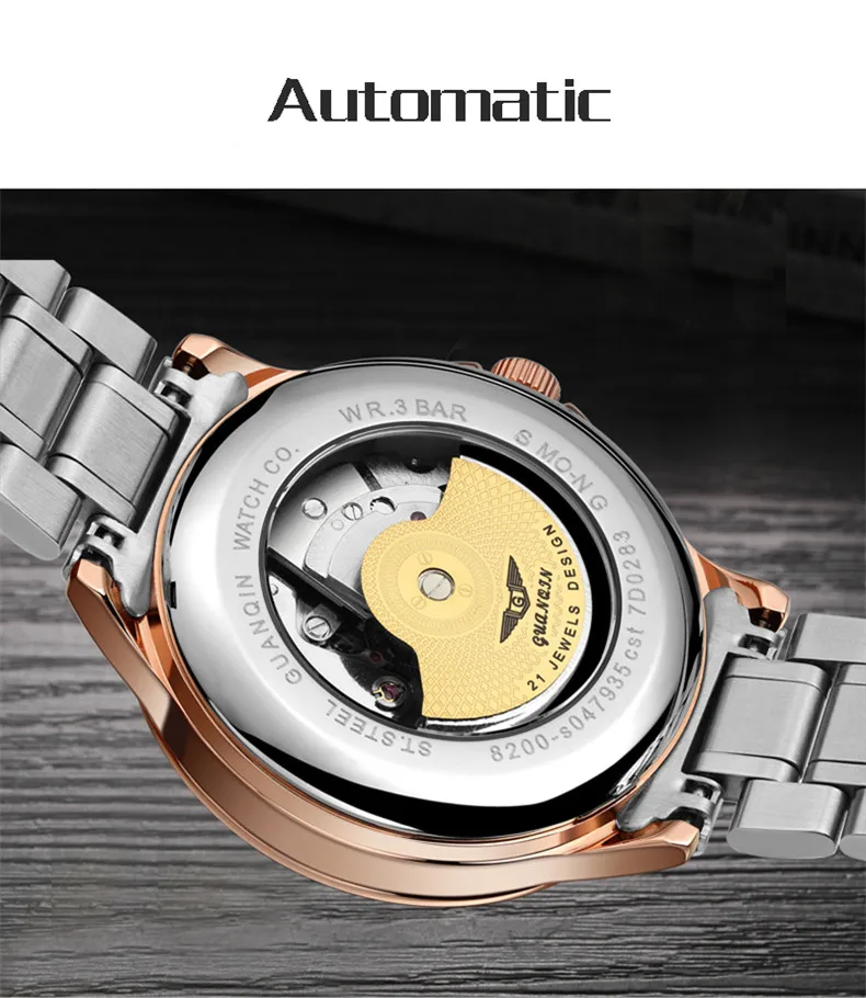 Часы наручные GUANQIN Мужские автоматические, водонепроницаемые мех...