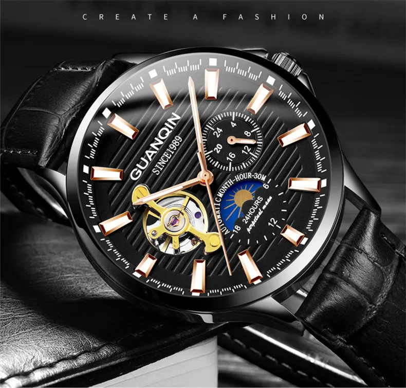 GUANQIN 2020 бизнес часы Мужские автоматические светящиеся часы муж...