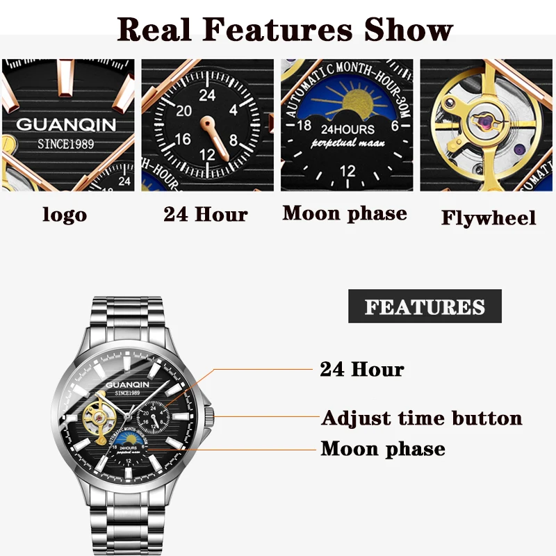 GUANQIN 2018 новые часы мужские водостойкие автоматические светящие...