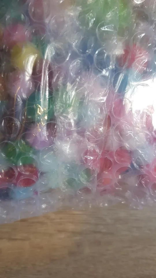 Товар в Казахстан пришёл через 5 недель. Упакованы шарики в целлофановый пакет. Все целые. Размер 0,5см. Количество я не считала, но их достаточно много. Цвета присутствуют яркие, пастельные и неоновые, темных цветов мало. Спасибо продавцу. Буду заказывать ещё!