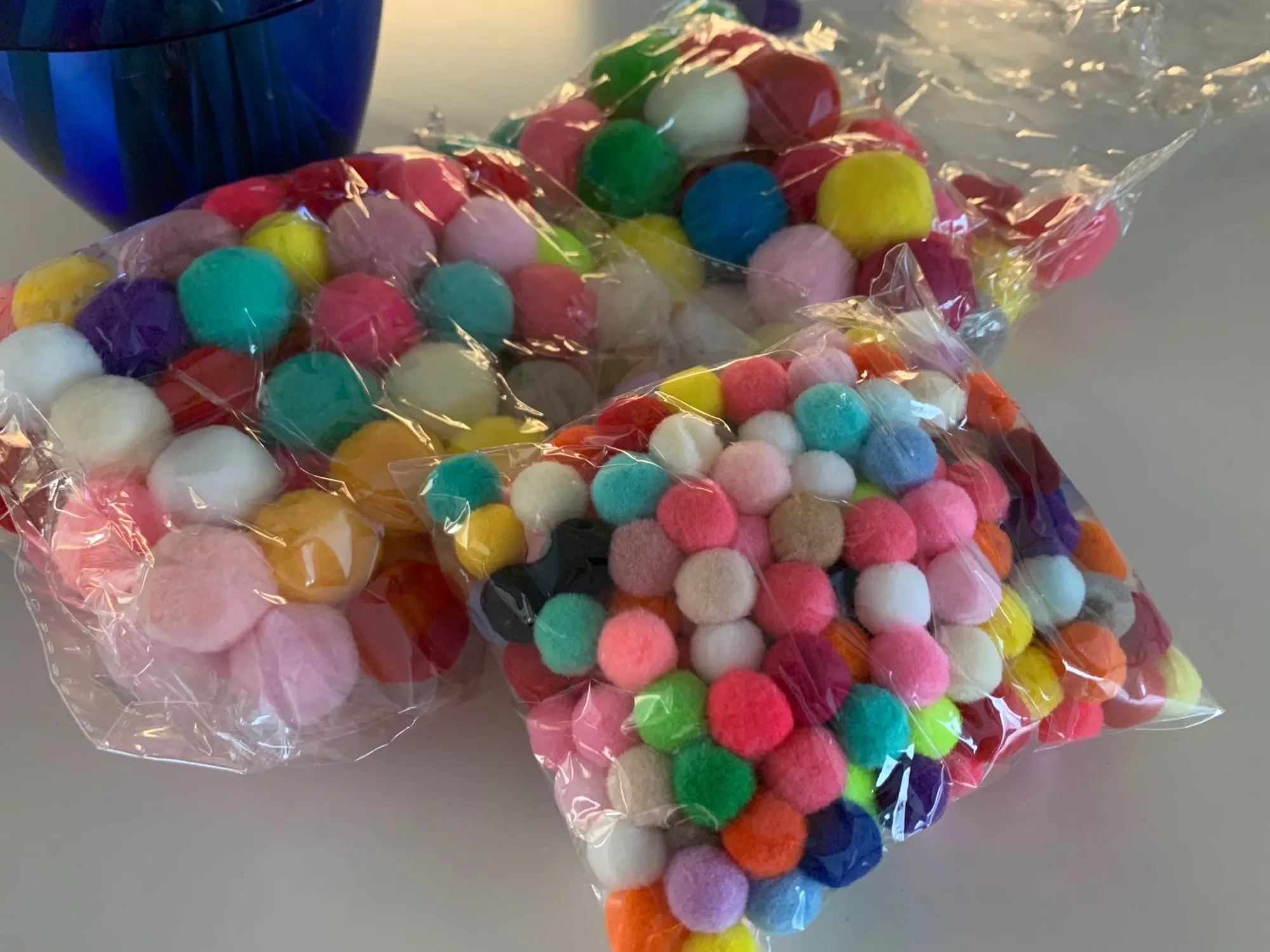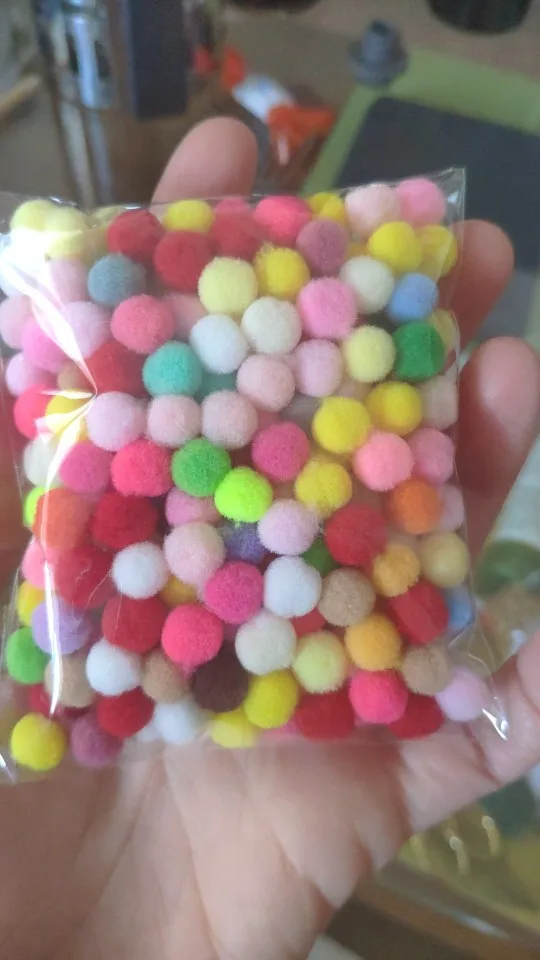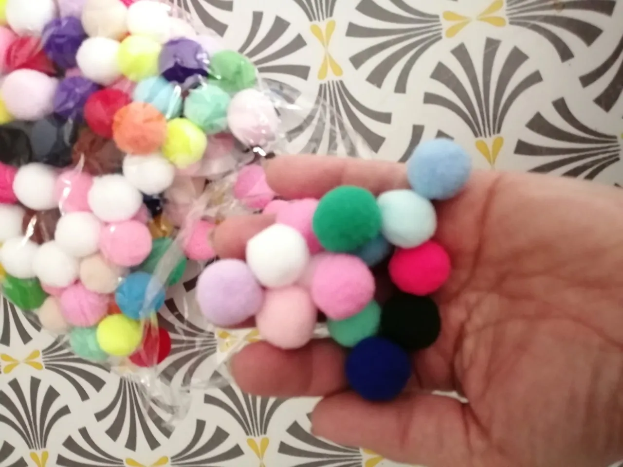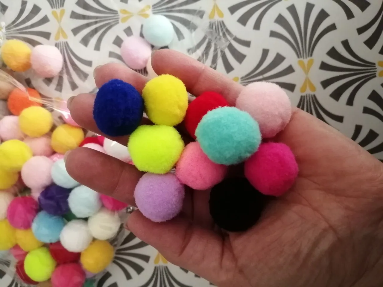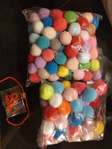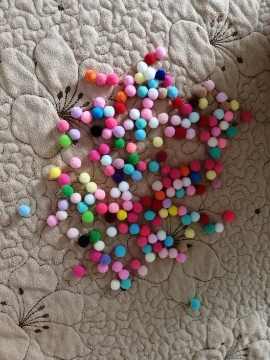 Помпоны хорошего качества, полученные довольно быстро, неплохие разные цвета, даже если есть большинство розовых и красных.