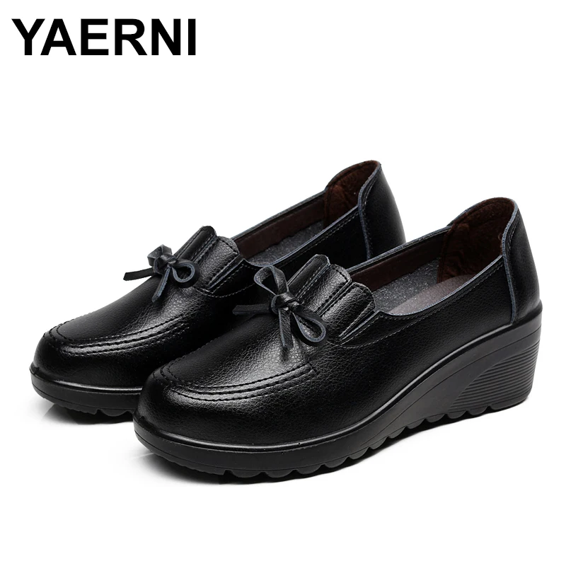 YAERNI Осенние новые модные женские туфли на шнуровке на высоком каблуке женские кожаные туфли на танкетке повседневные туфли женские Размеры 35-41
