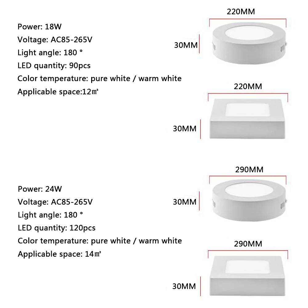 3000K6500K Светодиодная панель AC 85-265V ультратонкая 3 см светодиодный ная Светодиодная панель потолочная лампа 6W 12W 18W 24W поверхностное крепление