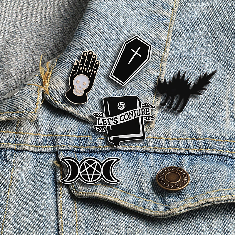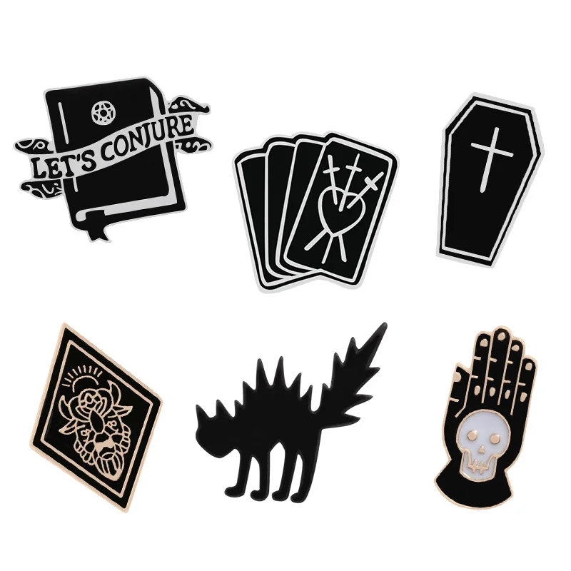 Броши в стиле панк, готика, темный гроб, книга, ручная кошка, ведьмы, эмалированная заколка на лацкан, рюкзак, рубашку, значки, ювелирные изделия, подарки на Хэллоуин