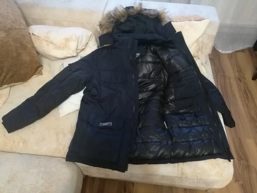 Куртку брали XXL на мужчину 170 ростом, 63кг, говорит, что подошло отлично, не большая и не маленькая. Капюшон отстёгивается, карманов аж 9 штук, внутренний только 1. На рукавах манжеты-незадувайки, молнии все работают хорошо. По теплоте сложно пока судить, с началом зимы дополню отзыв. Но выглядит плотной, возможно, будет и не холодно зимой. Цвет указан темно-синий, но в реале практически черный. Пришла в Петербург достаточно быстро по ЕМС почему-то, хотя трек был для пункта выдачи DPD.