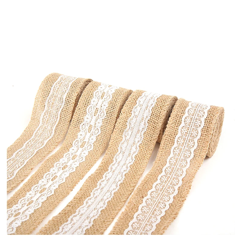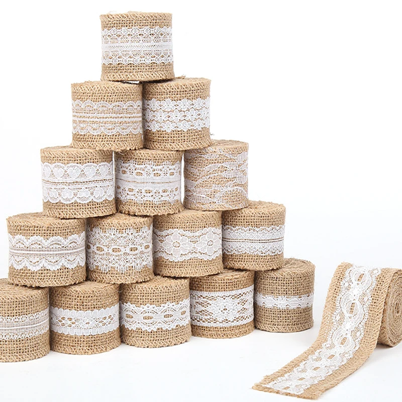 Джутовая лента из натуральной джутовой мешковины в рулонах, 2 м, 5 см, с кружевом, винтажный деревенский декор, украшение для свадьбы, вечеринки, товары для творчества