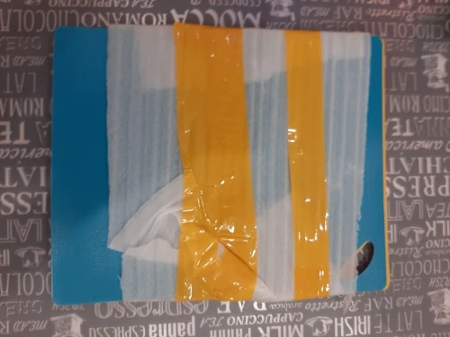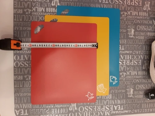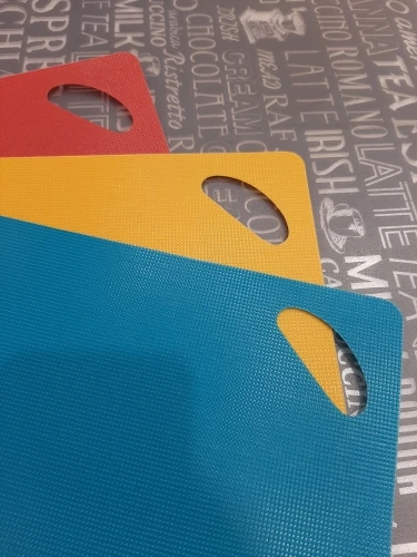 Доставлено быстро в объединенной посылке. Упаковка - пакет и немного мягкой пленки, повреждений нет. Размер соответствует. Цвета яркие. Материал - пластик, хорошо гнется. Одна сторона гладкая, на ней рисунок продукта. Вторая сторона шершавая, антискользящая. Мне нравится.
