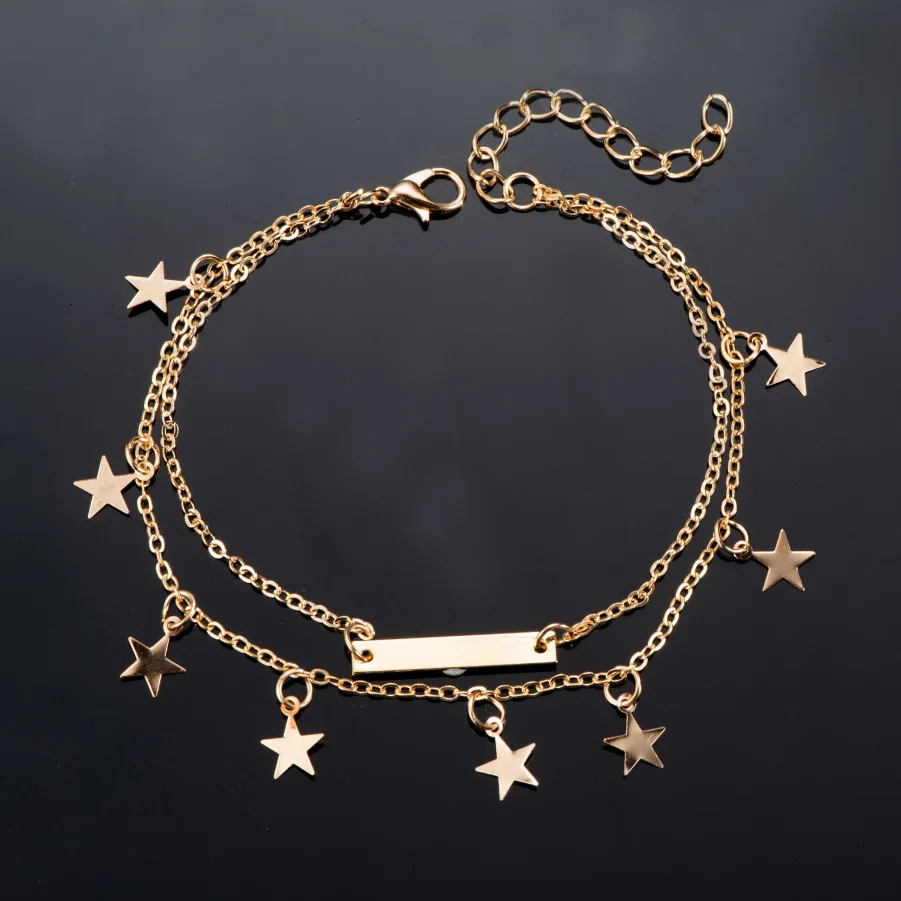 Браслеты на ногу Многослойные женские, анклеты золотогосеребряного цвета в богемном стиле, с подвеской в виде звезды, цепочка на лодыжку, в стиле бохо