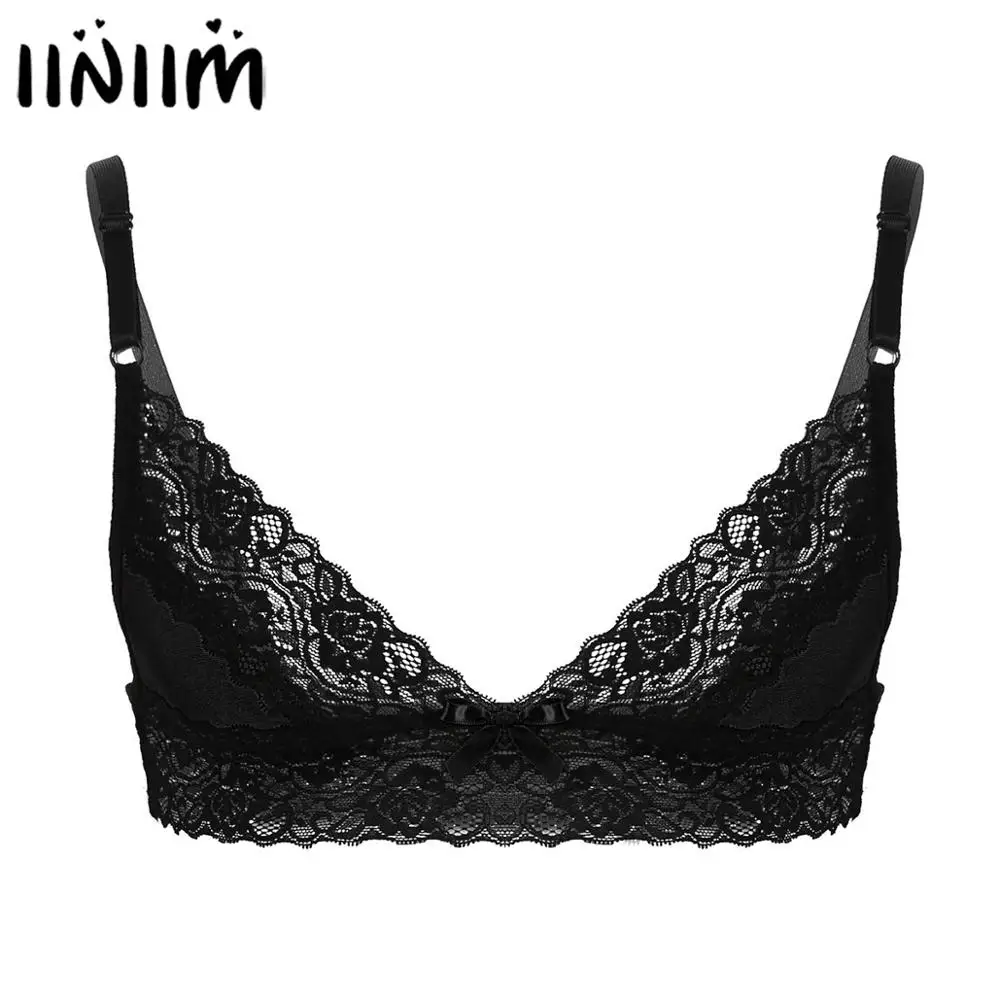 Эротическое нижнее белье iiniim для мужчин и женщин, бюстгальтер на тонких бретелях-спагетти, с цветочной кружевной отделкой, без косточек