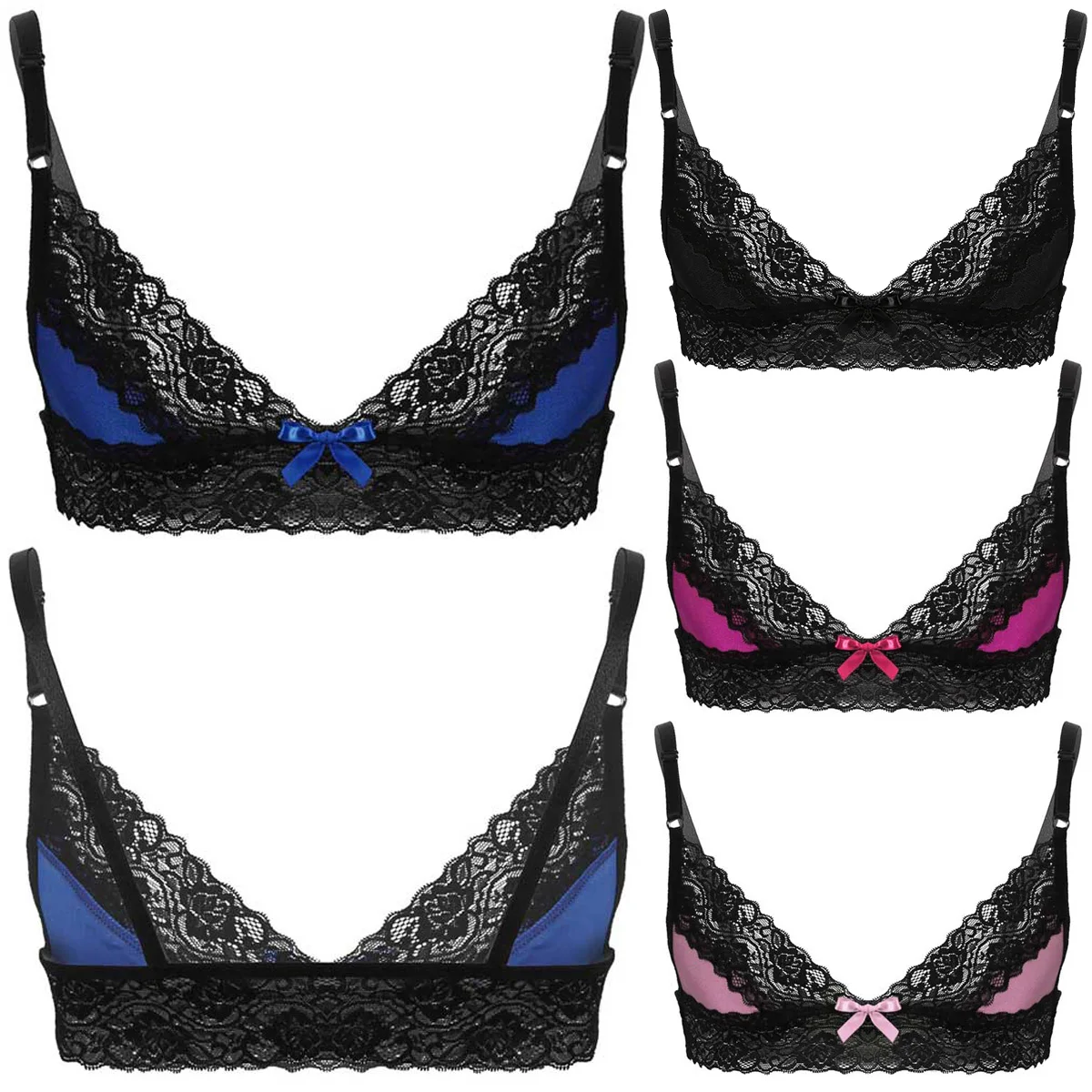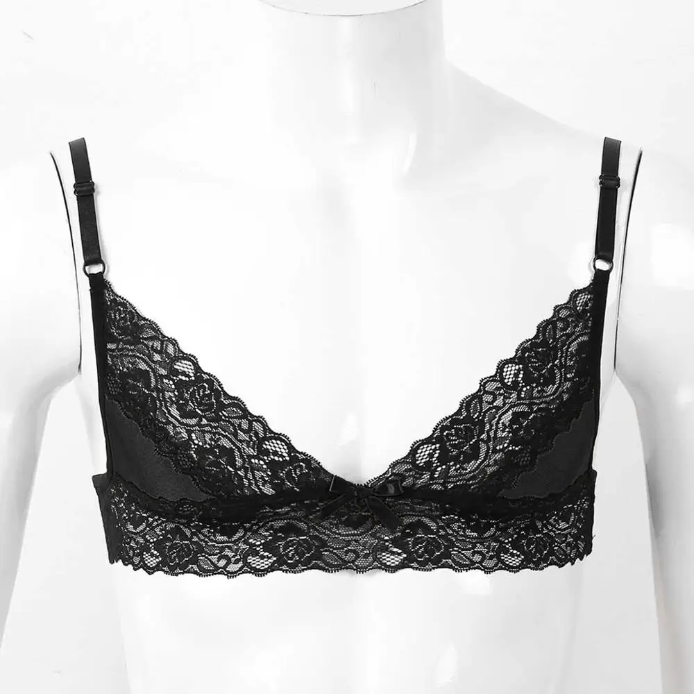 Особенности: Мужской эротический неженский бюстгальтер, нижнее белье, поддержка без косточек и без подкладки. Регулируемые бретели-спагетти, Треугольные чашечки с цветочной кружевной отделкой, утягивающая застежка. Хорошая эластичная ткань, мягкая и удобная в носке, сделает ваше тело совершенно расслабленным. Идеально подходит для особенной ночи, Дня Святого Валентина, подарков для медового месяца, свадебной ночи, свадебных подарков. Пожалуйста, внимательно проверьте размер перед покупкой, ручная/машинная стирка в холодной воде.