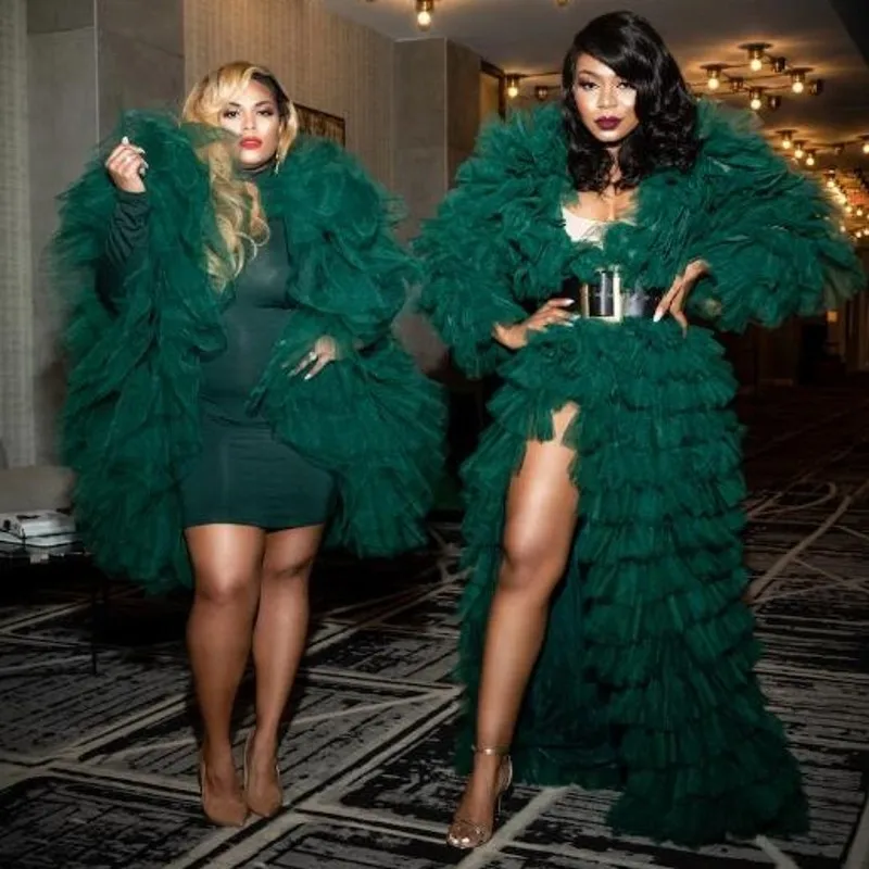 Изумрудная куртка из фатина, многослойная Женская куртка по колено, индивидуальная праздничная одежда