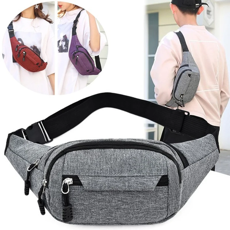 Водонепроницаемая тканевая поясная сумка для мужчин и женщин, Спортивная дорожная однотонная нагрудная сумка на молнии, поясная сумка унисекс